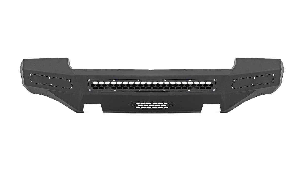 Update the look of your 07-13 GMC Sierra 1500 with Rough Country's High Clearance Bumper. This cost effective mod comes ready to install straight out of the box, giving your truck the tough look it deserves quickly and easily. Rough Country's High Clearance Bumper is modular, you can pick and choose the options best suited to your needs and the look you re going for. Each bumper features trim plates and mounting options that allow you to run a series of LED lights for impressive illumination and includes a winch mounting plate. Optional LED upgrade kit includes (1) 30in Single Row LED and (2) 10in Slimline LEDs. For a more classic look, simply use the provided trim panels for a sleeker appearance. Our High Clearance Bumper comes with durable, flat black powder coat finish, ready to withstand the elements -No painting required for a hassle-free install.