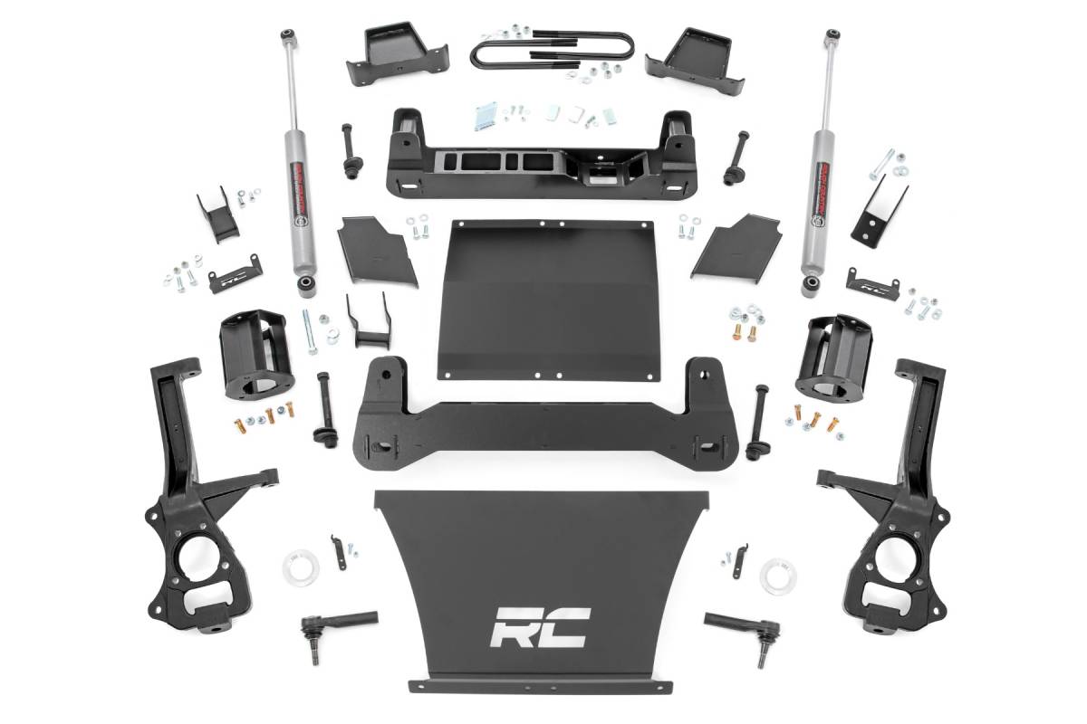 Explore New Heights: Transform your truck with Rough Country's 4-inch Suspension Lift, perfectly designed to enhance the bold, aggressive styling of GM s all-new fourth-generation Sierra 1500 AT4 and Silverado 1500 Trailboss. These models, already equipped with GM s factory two-inch kit, are taken to the next level with Rough Country's lift kit giving your vehicle a commanding presence on and off the road. Whether you're tackling tough trails or cruising through city streets, the Rough Country 4-inch Lift ensures improved performance and head-turning appeal. Innovative Design and Construction: When changing a vehicle's suspension, the key to preserving ride quality is keeping the geometry of all suspension components as close to their factory angles as possible. This suspension kit combines the use of durable steel knuckles, differential brackets, and drop cross members to reduce cv angles and simulate factory angles all while achieving new heights. Featuring a set of upper strut spacers that offer uncompromised strength and rigidity, gaining lift height is no issue. Completing the rear of this suspension kit is a set of rear blocks, shocks, and U-bolts that allow you to retain factory-like geometry. This combined setup provides enough clearance to run 35" tires without additional modifications. We didn't want to limit you to one standard kit. Rough Country's 4-inch kit is configurable with all the shock options that we offer. This allows you to choose which shock series you want! Ranging from our nitrogen-charged N3 shocks to our Vertex reservoir shocks the power to choose is in your hands. Installation: With minor cutting and a strut compressor required to install, an estimated timeframe of 8-10 hours is recommended to complete this full installation. This full kit can be installed at home and can be completed efficiently and quickly! Limited Lifetime Replacement Warranty: Rough Country's 4" Suspension Lift Kit is backed with a limited lifetime replacement warranty towards manufacturer defects. As such, the product is protected from structural and workmanship damage after the date of purchase. With our industry-leading warranty give yourself peace of mind when using Rough Country's Suspension products!