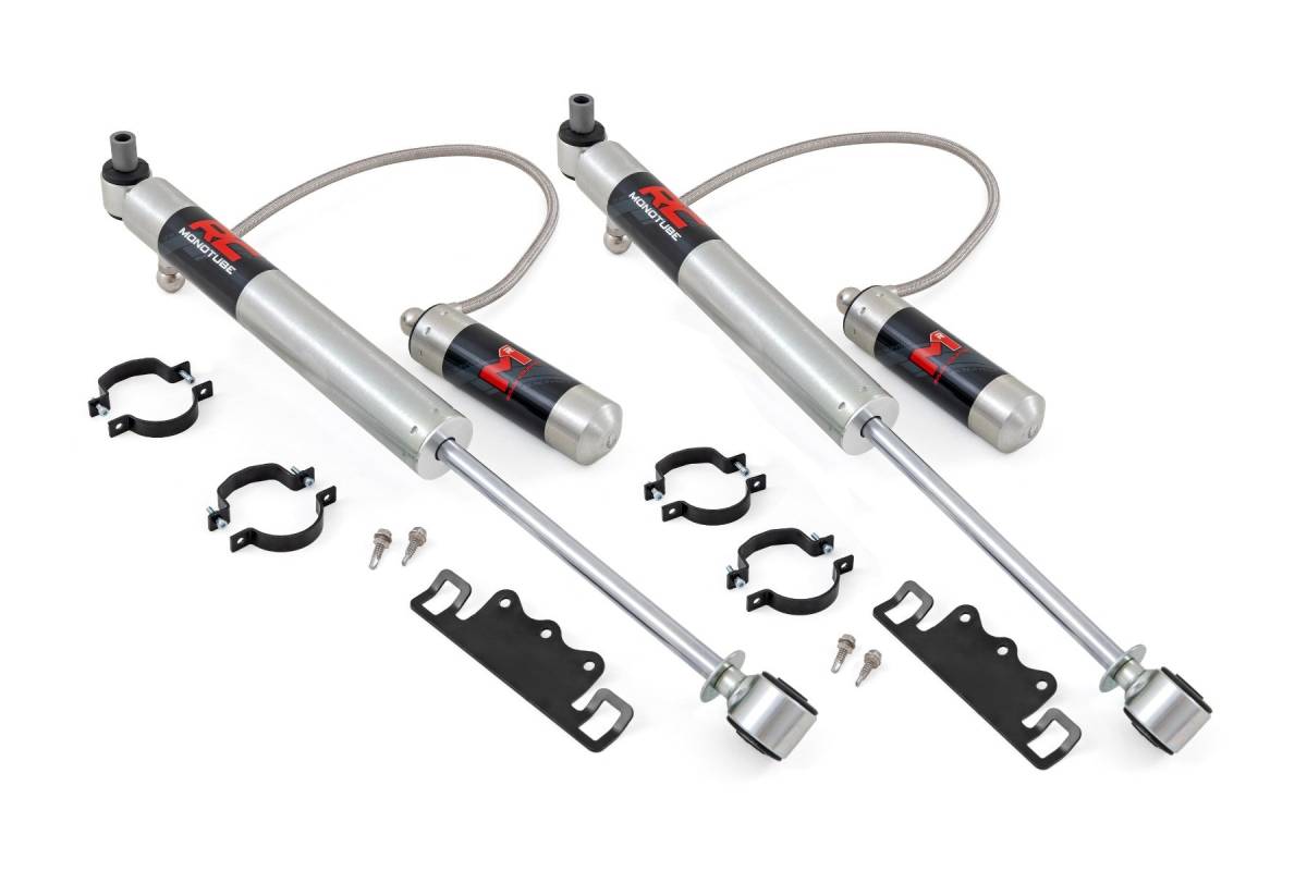 Rough Country - M1R Monotube Front Shocks - 0-2.5" - Jeep Gladiator JT 4WD (2020-2025)- Monotube shock with external reservoir: Features an internal floating piston for enhanced shock absorption and better heat dissipation, ensuring maximum performance.