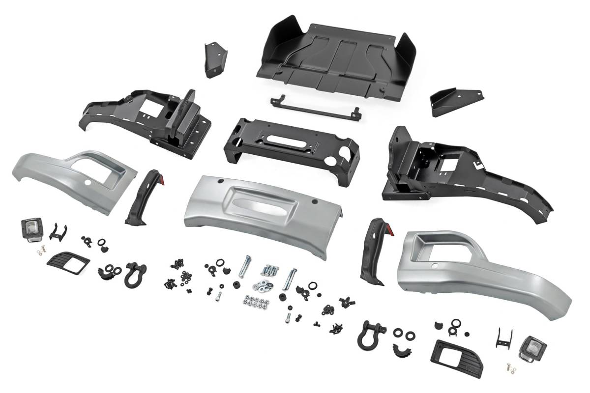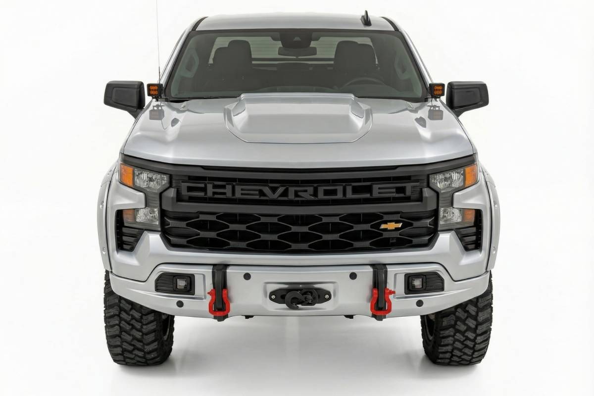 FXS Bumper: Premium Style Meets Rugged Capability: Upgrade your fourth-generation Chevy Silverado 1500 with the Rough Country FXS Bumper. Engineered to look like a factory option, it preserves your Silverado's sleek lines while giving it an aggressive, off-road-ready stance. Built for Off-Road Performance: Optimized approach angles and rugged hybrid steel and formed plastic construction provide superior trail clearance, unmatched strength, and standout style. The FXS Bumper includes a reinforced winch mount, integrated 3/4" D-rings with 7/8" pins, and accommodates factory parking sensors, delivering full recovery capability and modern convenience. Optional PRO12000S Winch: Available with Rough Country's PRO12000S winch, providing 12,000lb of heavy-duty recovery power for maximum off-road capability. Lighting and Protection: Includes Rough Country's SAE-compliant fog lights ready for installation and features an included gravel guard to help protect your vehicle's underside from rocks and debris. Fascia is available in flat black or paint-to-code for a factory-matched finish. Durable and Ready to Install: Designed for a hassle-free installation, the FXS Bumper is built to withstand the elements while giving your Silverado a premium, customized appearance ready for any adventure.