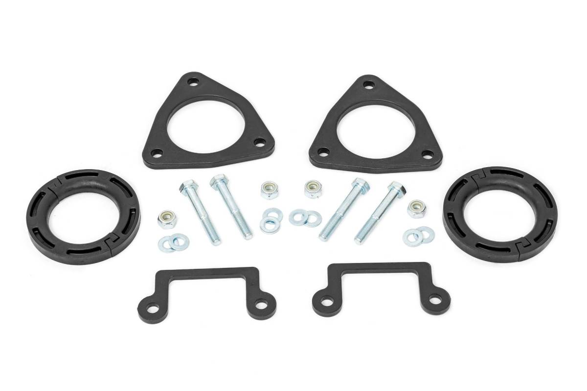 Improved Ground Clearance and Ride Quality. Give your GMC Sierra AT4X/Chevy Silverado ZR2 increased ride height and a more aggressive appearance with Rough Country's 1.5in Leveling Kit! From the factory, the GMC Sierra AT4X/Chevy Silverado ZR2 sits lower in the front than the rear, creating a nose-down look that leaves a lot to be desired. Innovative Design and Construction. Rough Country's 1.5in leveling kit is exactly what your GMC Sierra AT4X/Chevy Silverado ZR2 needs to achieve the aggressive look it was meant to have. Rough Country's 1.5in Leveling Kit durable strut spacers, giving your AT4X incredible ride quality both on and off-road. Once installed, this kit gives your AT4X/ZR2 plenty of ride height for larger tires while offering a clean, level look from front to rear. Installation. Featuring a 100% bolt-on process, installation couldn't be easier. With an estimated timeframe of 3-4 hours, this full kit can be installed can be completed efficiently and quickly! Limited Lifetime Replacement Warranty. Rough Country's 1.5in Leveling Kit is backed with a limited lifetime replacement warranty towards manufacturer defects. As such, the product is protected from structural and workmanship damage after the date of purchase. With our industry-leading warranty give yourself peace of mind when using Rough Country's Suspension products!