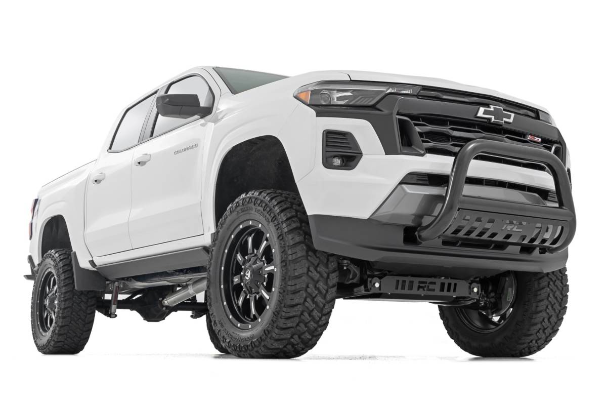 Superior Lift Solution. Looking to add some serious attitude to your third-generation Colorado? Rough Country's 6-Inch Lift Kit is just what you need. This lift kit gives your truck a meaner, lifted, and level stance while providing a smooth ride for unmatched highway and trail performance. It also adds room for larger wheels and tires, so you can make your truck stand out from the crowd. With excellent ride quality and handling characteristics on the road, this lift kit is the perfect way to take your GM to the next level. High-Quality Construction. Rough Country's 6-Inch Lift Kit for the 3rd gen Colorado makes it easy to gain that much-needed ground clearance and run up to a 35" tire for that aggressive look you want! Designed to provide excellent ride quality width and factory alignment specs, this kit boasts premium components, giving you a higher quality lift on your truck. The high-quality components and innovative design provide the strength, stability, and up-travel you need to conquer almost any terrain. Installation and Warranty. Our 6-Inch Lift Kit is his all-inclusive kit is a total transformation for your mid-size, with durable lifted knuckles, protective skid plate, and all the brackets and hardware needed to set your truck to a factory-like geometry while providing additional ground clearance. When you purchase a Rough Country product, you get more than a great product at an affordable price. You also get peace of mind knowing that your purchase comes with a limited lifetime replacement warranty for manufacturer defects. With Rough Country's industry-leading warranty, you can be sure that your Rough Country lift kit is protected from structural and workmanship damage after the date of purchase.