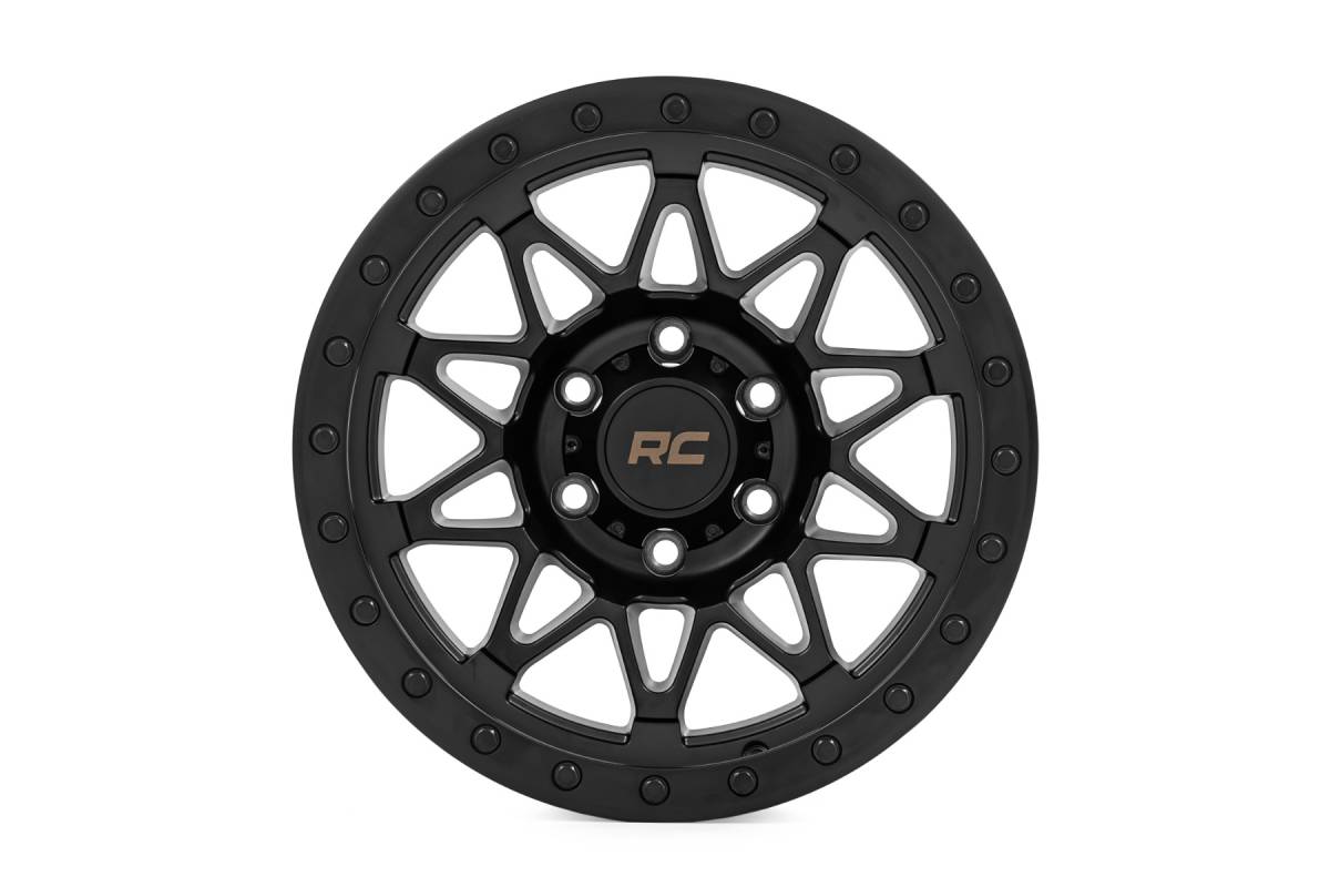Take your off-road rig to the next level with a wheel designed for adventure and built to perform. The Rough Country 78 Series wheel combines bold aesthetics with rugged functionality, making it the ultimate choice for off-road enthusiasts. Aggressive Semi Gloss Black Finish: Perfectly complements the tough, trail-ready look of your vehicle. Simulated Beadlock Design: Gives your rig that hardcore off-road styling while maintaining easy installation. Unmatched Strength & Lightweight Performance: Precision-engineered from a single piece of premium aluminum for unbeatable durability without adding extra weight. Premium Details: Includes a Rough Country black center cap with standout bronze lettering for a clean, custom touch. Trail-Tested Durability: Backed by a 1-year finish warranty and a Limited Lifetime Structural Warranty to handle whatever the trails throw your way. Whether you're tackling rugged terrain or just want to stand out from the crowd, these wheels are built to deliver. Gear up and conquer the trails in style with Rough Country!