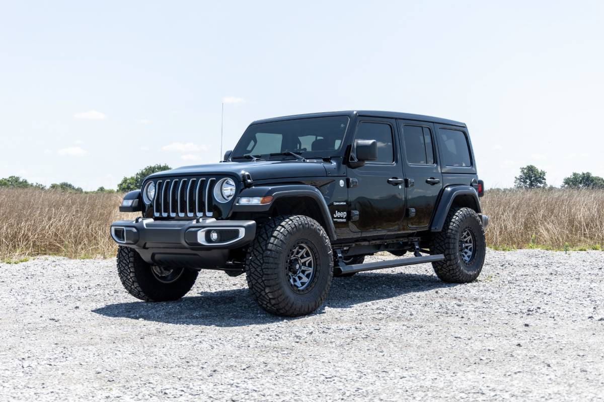 Fits 4-door models ONLY. Due to variances in coil spring rate this kit NOT fit Rubicon models. Due to variances in coil spring rate this kit NOT fit 4xe models. Due to variances in coil spring rate this kit NOT fit 392 models. 35" tires will clear, but rubbing may occur with extreme articulation. If planning on running 35" tires on factory wheels, double-check clearance between the front tire, lower control arm, and sway-bar links.