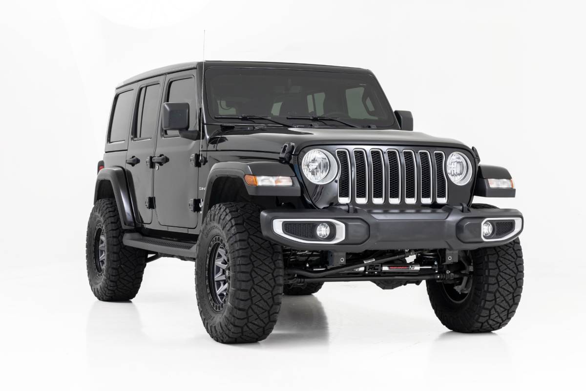 Fits 4-door models ONLY. Due to variances in coil spring rate this kit NOT fit Rubicon models. Due to variances in coil spring rate this kit NOT fit 4xe models. Due to variances in coil spring rate this kit NOT fit 392 models. 35" tires will clear, but rubbing may occur with extreme articulation. If planning on running 35" tires on factory wheels, double-check clearance between the front tire, lower control arm, and sway-bar links.