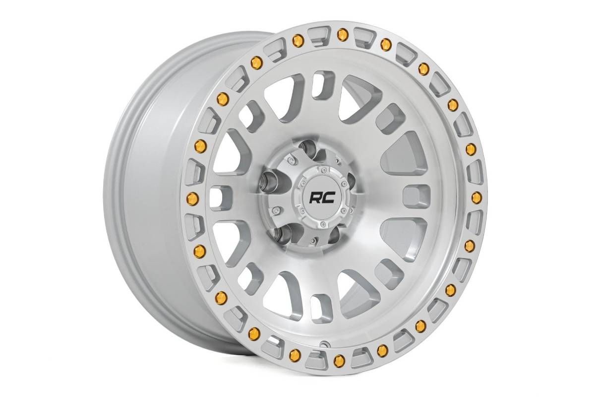 If your stock wheels are holding you back and lack the rugged style you crave, the Rough Country 82 Series Machined Wheel is your perfect upgrade. This powerhouse combines bold styling with premium performance to dominate the trail and turn heads everywhere you roll.8-Spoke Single-Piece Aluminum Construction: Crafted from lightweight yet high-strength aluminum, these wheels are engineered to withstand punishing off-road conditions without adding unnecessary weight.Premium Full Machined Finish: Precision-machined for a sleek, polished look, the 82 Series delivers a striking appearance that stands out both on the street and in the dirt.Aggressive Simulated Beadlock Design: Gold accent hardware enhances the wheel's rugged edge, giving your ride a bold, off-road-ready stance.Custom RC Center Cap: Each wheel includes a matching machined Rough Country center cap with bold black RC lettering for a clean branded touch.Warranty: Backed by a 1-year finish warranty and a Limited Lifetime Structural Warranty, you can ride with complete confidence knowing your investment is protected.The 82 Series Machined Wheel is the ultimate upgrade for off-roaders who demand durability, style, and performance. Ditch those plain stock wheels and take your ride to the next level with Rough Country.