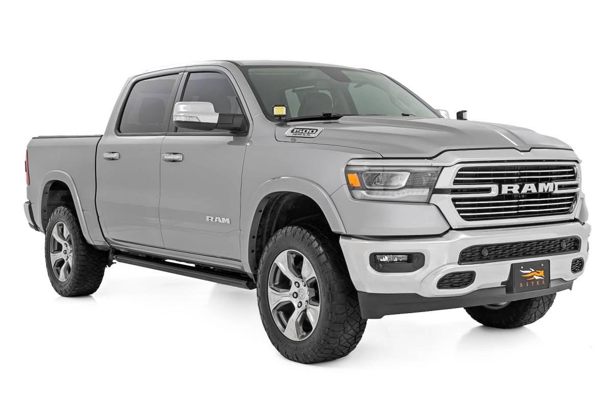 Light Up the Night. Rough Country's Ditch Mounts for your fifth-generation Ram 1500 give you all the performance and durability that Rough Country is known for and provide plenty of light coverage for use on the trail or work site. These LED lights have a powerful punch of light, illuminating both sides of the trail for maximum safety. Heavy-Duty Build Quality. Rough Country's Ditch Mounts are compatible with RC Round or Square lights. The ditch mounts come in a choice of spot beams for longer distance illumination or floods for a wider light beam. The IP67 waterproof protection means your lights will stay safe from dust, mud, and rain. Made from 7-gauge steel and powder-coated black, our Ditch Mounts are strong, durable, and ready for whatever you can dish out. Installation and Warranty. Designed to be a straightforward bolt-on installation with no drilling, Rough Country's Ditch Mounts can be easily mounted without interfering with your 1500's wipers or hood. You will need to trim a small section of the plastic cowl to install this kit. All necessary hardware and brackets are included, along with detailed instructions. As with all Rough Country products, the Ditch Mounts are covered by our Limited Lifetime Warranty.