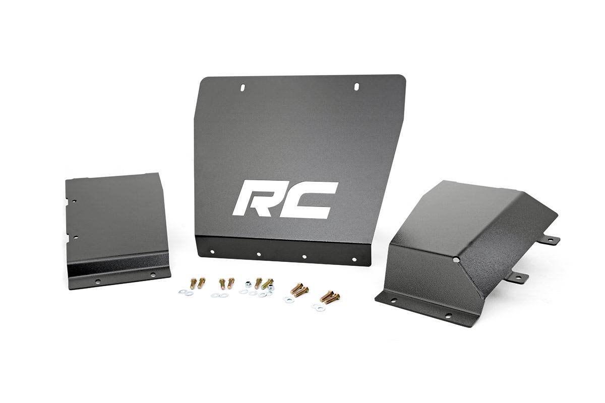 Armor up the underside of your GM 1500 with Rough Country's durable Skid Plate System. This easy-to-install kit is the perfect complement to our popular 5-inch, 6-inch and 7.5-inch Lifted Knuckle Suspension Kits for new model Chevy and GMC 1500's.Fear no hazard - on or off-road - with this 3-piece rugged skid-plate designed to shield your truck's differential, electric differential actuator, and electric rack and pinion components. Made of high-quality G80 3/16-inch steel, this full belly skid connects from the front cross member to the rear, offering a serious wall of protection from rocks, debris, and other hazards. The front plate features a laser-cut "RC" logo, providing a more aggressive look to the lower front end of your truck. Includes a Limited Lifetime Warranty!