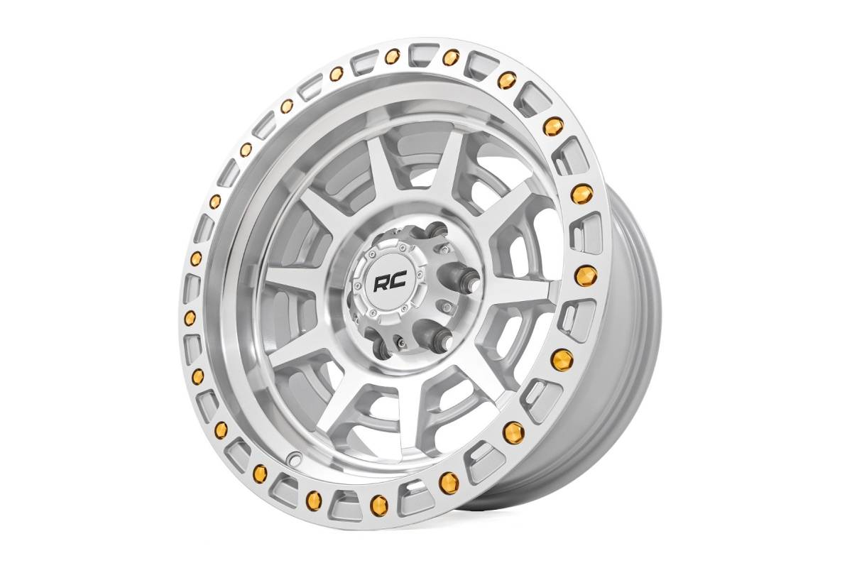 Bold New Look: Give your ride a head-turning upgrade with Rough Country's 85 Series Machined Wheels. Featuring a sleek full machined finish and striking gold accent hardware, these wheels deliver the perfect blend of rugged attitude and refined style. Whether you're cruising the streets or tackling the trail, the 85 Series ensures your vehicle stands out from the crowd.Built for Performance: Engineered from lightweight, one-piece aluminum, these wheels are designed to be both super strong and super light. The aggressive simulated beadlock design with gold hardware not only adds off-road flair but also reinforces the wheel's commanding presence. Every detail is crafted with precision to enhance durability while maintaining a clean, performance-driven aesthetic.Rough Country Quality: Each wheel comes equipped with a matching machined RC center cap accented by bold black lettering for a branded finishing touch. Plus, you can roll with confidence knowing your wheels are backed by Rough Country's 1-year finish warranty and Limited Lifetime Structural Warranty. With the 85 Series Machined Wheels, you're getting unmatched strength, premium style, and lasting reliability in one package.