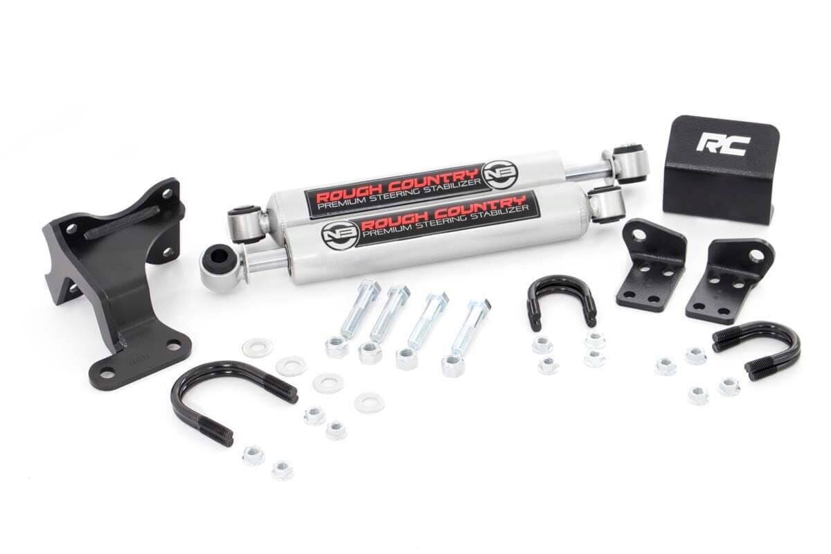 Rough Country - N3 Steering Stabilizer - Dual - 2-8 Inch Lift - Jeep Wrangler JK/Wrangler Unlimited (07-18)N3 Steering Stabilizer - Dual - 2-8 Inch Lift - Jeep Wrangler JK/Wrangler Unlimited (07-18)