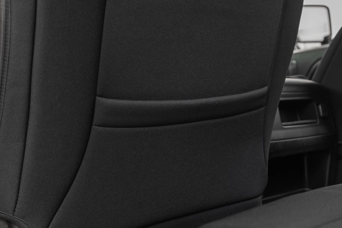 Want to protect your seats or refresh a worn-out interior? Say goodbye to stains, spills, and daily wear with Rough Country's Neoprene Seat Covers-designed for durability, comfort, and a factory-quality fit. Snug, Secure Fit: These precision-crafted seat covers conform tightly to your seats, providing a sleek, factory-like appearance while shielding against spills, dirt, and scratches. Factory-Matched Quality: Designed to meet factory specifications, these covers seamlessly blend with your vehicle's interior for a fresh, polished look without sacrificing style or comfort. Durable 4-Layer Construction: Built to last, these covers feature a four-layer design with foam padding and a tough polyester shell, offering unmatched protection and long-term resilience. Breathable & Water-Resistant: The neoprene layer ensures maximum breathability for all-day comfort while repelling water to safeguard your seats from spills and messes. Complete Interior Protection: Get full front seat coverage, including headrest covers where applicable, plus rear seat covers to defend against kids, pets, and everyday use. Reliable Warranty for Peace of Mind: Backed by a two-year warranty, ensuring lasting durability and performance you can trust. Don't let daily wear take a toll on your interior. Upgrade to Rough Country Neoprene Seat Covers today and enjoy a stylish, protected ride every time you hit the road.