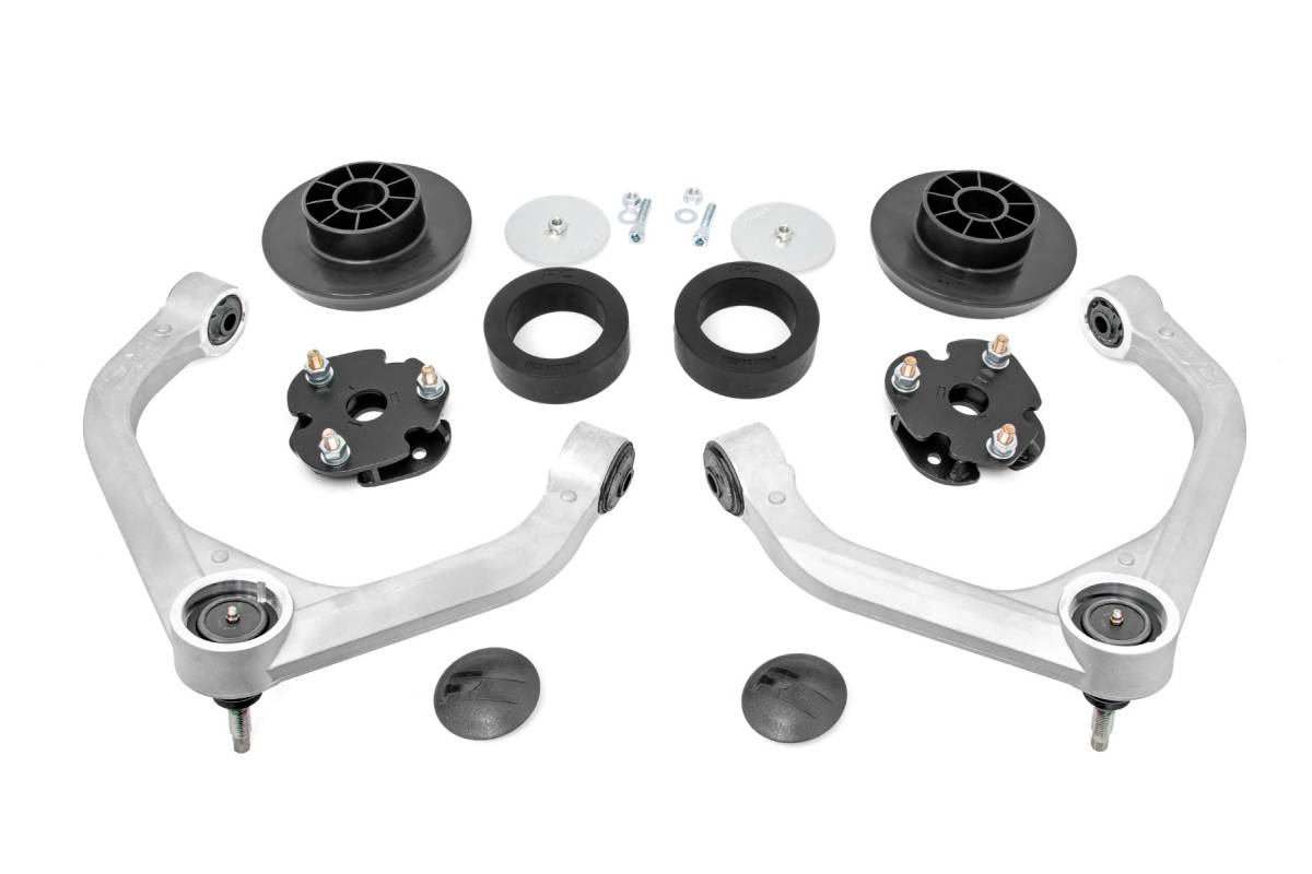 Rough Country's 3-Inch Bolt-On Kit delivers aggressive good looks, increased ground clearance, and an easy installation - all at an unbeatable value. Take your fourth-generation RAM 1500 to the next level with this premium lift kit, designed to enhance both on-road comfort and off-road capability. Increased Ground Clearance: Tackle rocky trails and rough terrain with confidence! This lift kit gives your RAM 1500 the extra height needed to clear obstacles effortlessly, improving both performance and protection. Front-to-Rear Leveling: Say goodbye to factory rake! This kit levels the front and rear of your truck, giving it a bold, aggressive stance that commands attention on and off the road. Premium Upper Control Arms: Equipped with forged aluminum upper control arms, this kit enhances strength and durability. These high-quality arms feature POM ball joints, providing a greater range of motion and smoother articulation for superior handling. These arms are also available in a red powder-coated finish for a custom look that stands out in the wheel wells. Pre-Installed Ball Joints: No hassle, no extra steps - our ball joints come pre-installed, making installation easier and ensuring long-term reliability. Hassle-Free Installation: Enjoy a bolt-on installation with no cutting or drilling required! This means less time in the garage and more time conquering trails. At Rough Country, we know every off-road journey is unique. That's why our 3-inch kit is fully adaptable, allowing you to choose between nitrogen-charged N3 shocks/struts for a smooth ride or M1 Monotubes for premium performance. With Rough Country, you're not just lifting your RAM - you're redefining your off-road experience.
