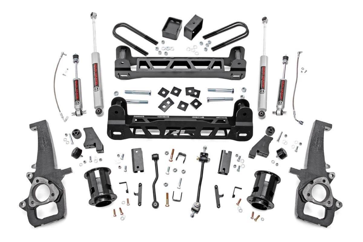 Transform Your RAM 1500's Performance and Style: Elevate your newer model RAM 1500 with Rough Country's 6-inch Suspension Lift. This complete system delivers rugged durability, improved off-road capability, and clearance for up to 35-inch tires, all while maintaining the smooth, controlled ride you expect. Heavy-Duty Construction for Lasting Reliability: Built with laser-cut steel components, this kit includes high-clearance front and rear cross-members for superior obstacle navigation. A tough skid plate protects your differential from harsh terrain, and lifted cast knuckles ensure proper suspension geometry after the lift. Balanced Ride Quality On and Off Road: Equipped with nitrogen-charged N3 shocks, valved specifically to provide a smooth blend of comfort and off-road control, this kit keeps you confident on every trail. Limited Lifetime Warranty for Peace of Mind: Backed by Rough Country's industry-leading limited lifetime warranty, your suspension investment is protected for the long haul.