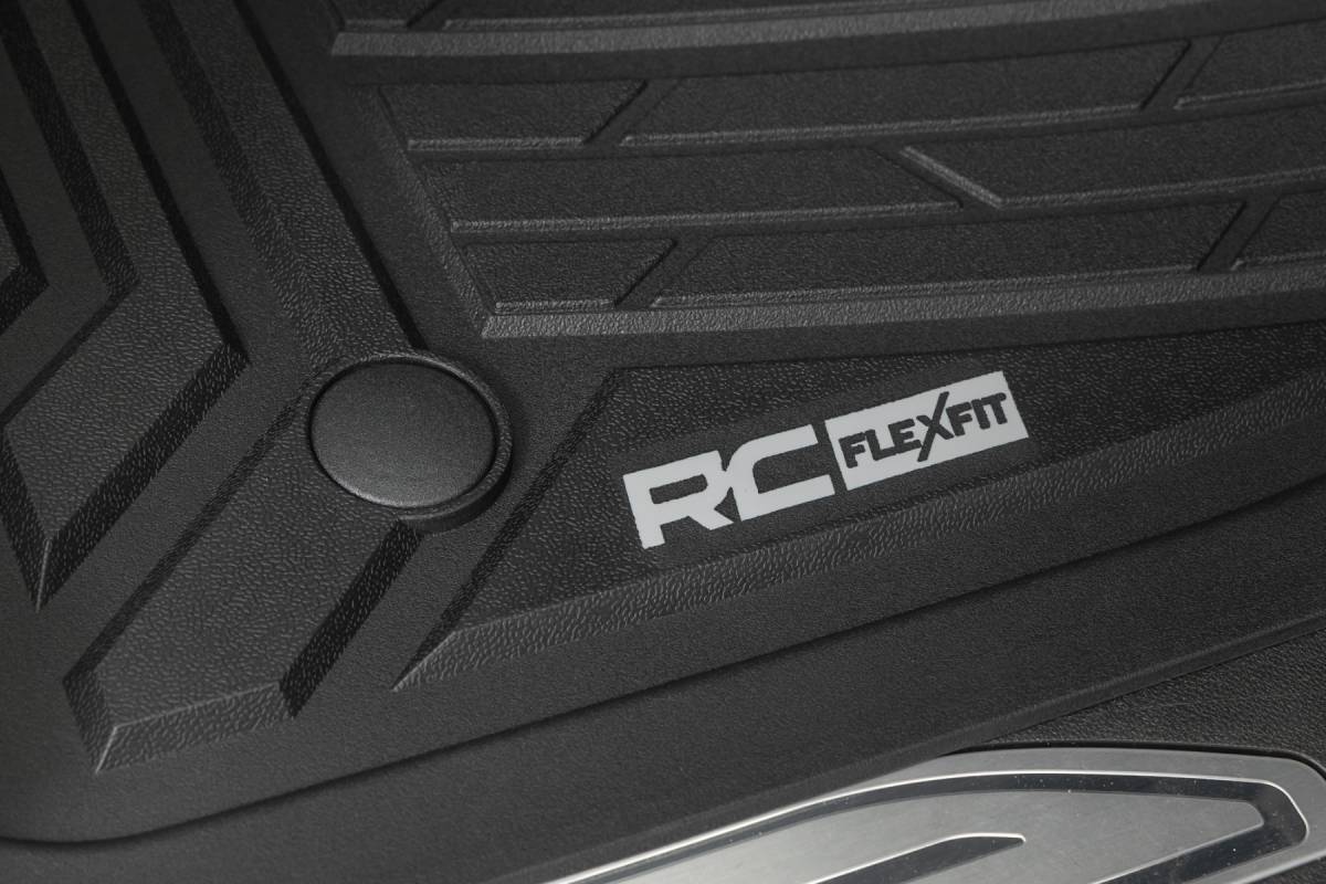 Introducing Flex-Fit floor mats the ultimate enhancement for your truck's interior and built tough to handle any challenge. Crafted from premium rubber-like material, these mats are as durable as they come, perfectly tailored to fit your truck's unique shape for a seamless finish. Stock floor mats just don't cut it for adventurers. They get trashed by mud, don't hold up to spills, and leave your carpets a mess. Give your ride the all-weather protection it deserves with Rough Country's Flex-Fit Floor Mats, the perfect solution for keeping your vehicle clean and protected. All-Weather Protection: Engineered to fit your vehicle perfectly, these mats provide top-notch defense against snow, mud, sand, saltwater, and more. Spill Saver Lip: Don't sweat the spills! Our mats feature a Spill Saver Lip that prevents liquids from reaching your carpet, so you can enjoy your coffee on the go without worry. Non-Slip, Textured Surface: Stay in control no matter the terrain with our mats' non-slip, textured surface, designed to keep your feet firmly planted while driving. Easy to Clean and Maintain: Cleaning up is a breeze! These mats are detachable and easy to clean, so you can spend less time on maintenance and more time hitting the road. Premium Materials: Constructed from a rubber-like TPE material, these mats are built to withstand extreme temperatures without cracking or warping. They will stay flexible and functional for the long haul. Effortless Installation: Forget wrestling with bulky mats. Flex-Fit Mats slide right into place for a quick and frustration-free installation. Upgrade your truck's defense against the elements with Rough Country's Flex-Fit Floor Mats. They'll keep your carpets looking fresh and give you peace of mind on every adventure.