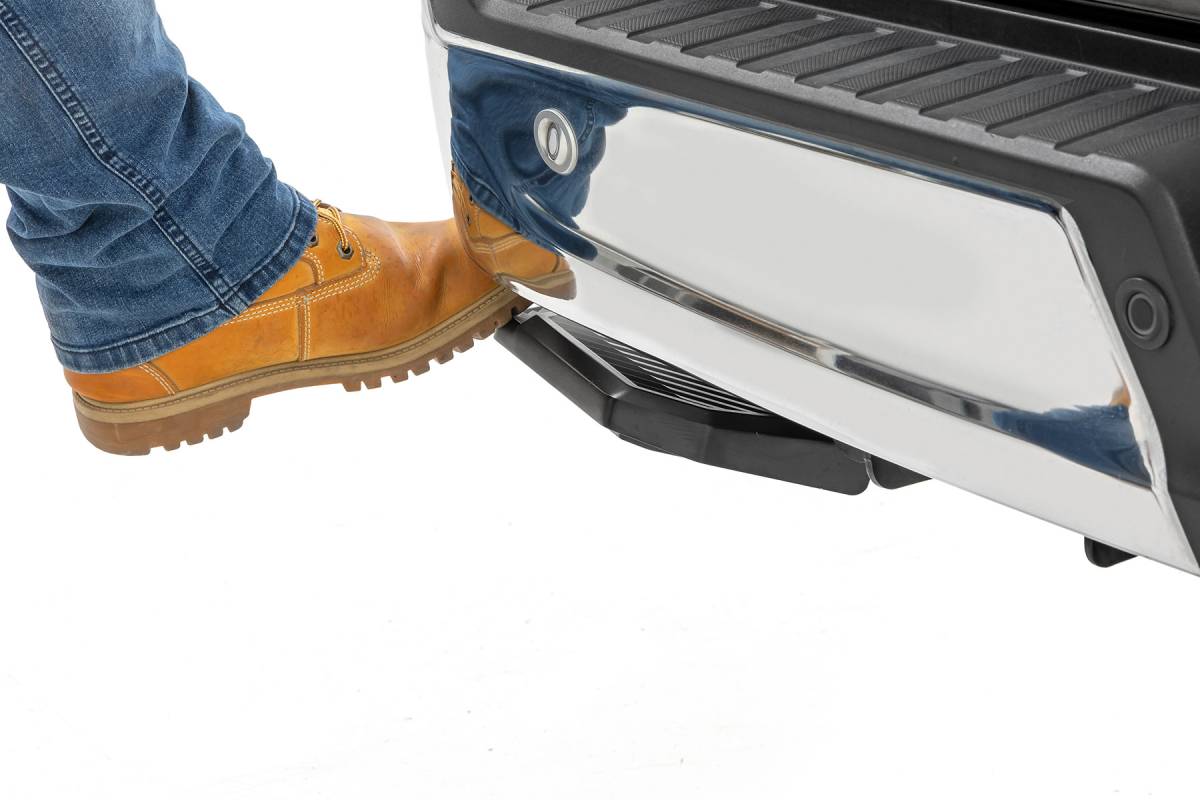this step gives you a 5-inch drop, so reaching into your truck bed feels like second nature. Foot-Push Deployment: No need to fumble around with handles or levers. Just give it a gentle nudge with your foot, and the step is ready to roll, supporting up to 330 lbs!Wide and Secure: With a 6" wide, non-slip surface, the die-cast aluminum board keeps your footing solid even when your boots are muddy or it's pouring rain. Durable Die-Cast Aluminum: Built tough with lightweight yet super-strong die-cast aluminum, this step will withstand the roughest terrain and hardest working days. Easy Bolt-On Installation: No need to bust out the big tools or fumble with complicated installations. This step bolts right on for a quick and easy setup. Give your truck the upgrade it deserves with the Rough Country Manual Bed Step. Invest in a step that's built to last, and make accessing your truck bed easier than ever. Tired of climbing up like you're scaling a wall just to reach your gear? The Rough Country Manual Bed Step is your answer for quick and easy access. With a simple tap of your foot, this step drops 5", giving you that extra boost to reach what you need without breaking a sweat. Whether you're tossing in tools or loading up camping gear, the Rough Country Bed Step has your back (and your knees).5-Inch Drop: Say goodbye to awkward stretches and hops