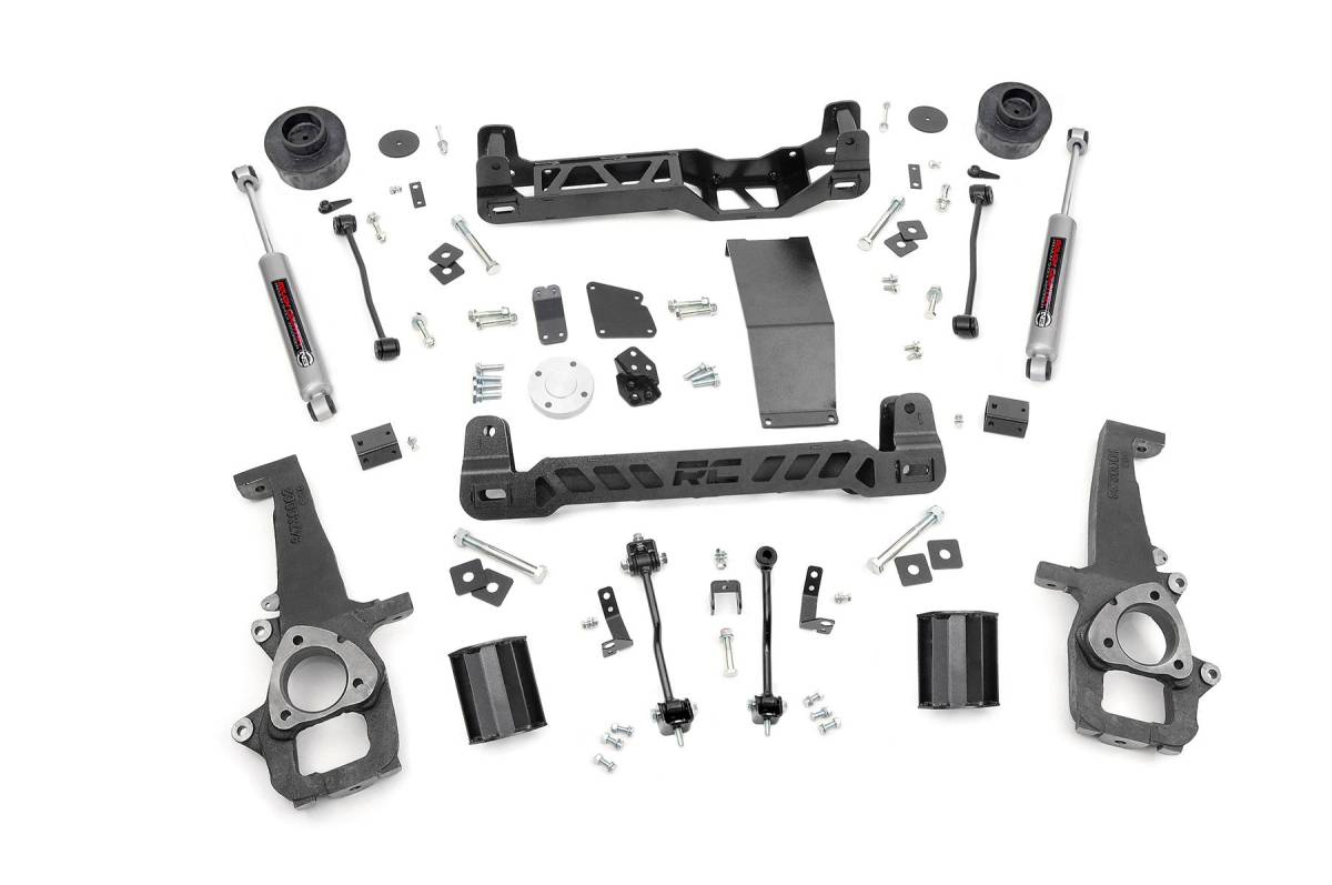 Transform your fourth-generation RAM 1500 with Rough Country's complete 4-inch Suspension Lift Kit. This all-inclusive system delivers an aggressive, commanding stance that perfectly complements your truck's rugged new design. Preserve Your Smooth Factory Ride: Experience the same comfortable and controlled driving feel you love. Our kit maintains a smooth factory-like ride quality so every journey, on-road or off, is just as comfortable as before. Boost Your Ground Clearance for Ultimate Off-Road Confidence: Gain plenty of added clearance to tackle the toughest trails and obstacles with ease. The 4-inch lift lets you run up to massive 35-inch tires for a bold look and enhanced off-road capability. Achieve a Balanced, Aggressive Stance: Level your RAM's front and rear for a sleek, aggressive profile that turns heads everywhere you go. The kit includes precision-engineered front and rear crossmembers, each laser-cut with the iconic RC logo for a fierce yet streamlined appearance. Fully Configurable with Premium Shock Options: Customize your ride quality with shock absorbers that match your driving style, from nitrogen-charged N3 shocks for balanced performance to the premium M1 Monotube shocks for the ultimate ride. Clean Installation with Long-Term Durability: All components are designed with drop brackets and proper geometry to keep your truck looking sharp and functioning flawlessly, no loose parts or unsightly hangers. Backed by Rough Country's Limited Lifetime Replacement Guarantee, this kit is built to last. Upgrade your RAM 1500 with Rough Country's 4-inch Suspension Lift Kit, dominate the trails, look the part, and drive like a champion every mile of the way.