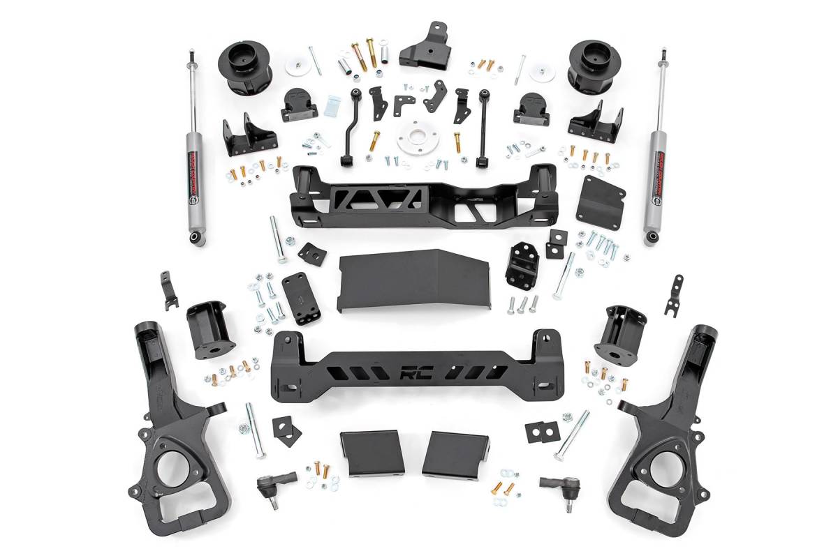 This all-inclusive kit delivers everything you need to give your truck an aggressive, commanding stance that perfectly complements the rugged design and upgraded styling of your RAM. Boosted Off-Road Performance: The 5in suspension lift provides increased ground clearance for superior off-road capability and confident obstacle navigation, letting you tackle tough terrain with ease. Balanced Ride Height: This lift kit levels the front of your vehicle with the rear, creating an even, aggressive stance while improving overall handling and ride stability. Aggressive Style Meets Durability: Equipped with high-quality front and rear crossmembers featuring a laser-cut RC logo, your truck gains a fierce yet streamlined look after installation. For true trailblazers, the kit includes rear N3 Nitrogen-charged shock absorbers, valved specifically to provide an ideal balance of on- and off-road performance. An upgraded outer tie-rod is also included, engineered to optimize turning precision, reduce bump steer, and accommodate a wider variety of wheel options. Performance Without Compromise: Best of all, you'll enjoy improved performance, the ability to run up to 35in tires, and enhanced undercarriage protection, all without sacrificing your truck's clean, factory-inspired appearance. The kit uses drop brackets to maintain proper suspension geometry, ensuring nothing hangs loosely or looks out of place. Backed by Rough Country's Limited Lifetime Replacement Guarantee, this suspension lift kit is your ticket to dominating every trail and turning heads everywhere you go.
