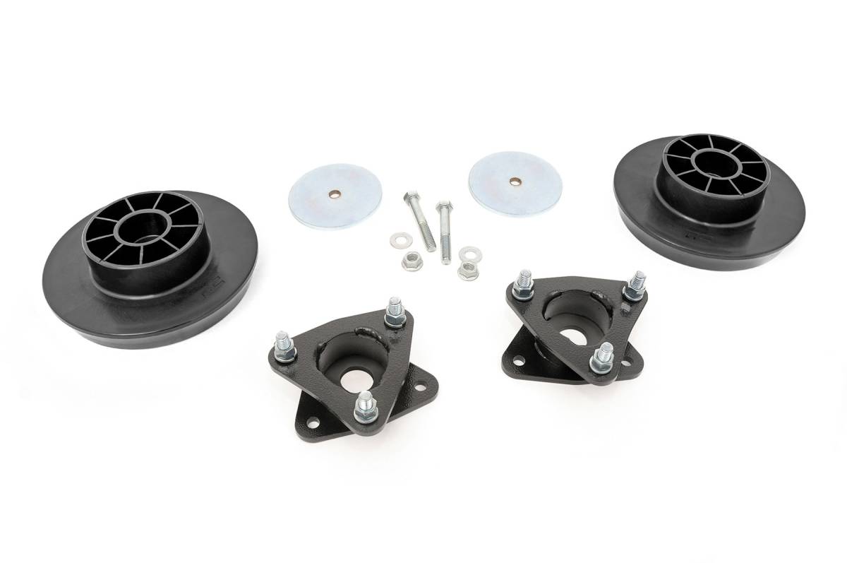 Put the finishing touch on your Dodge Ram 1500 with Rough Country's 2.5-inch Leveling Lift Kit, the perfect way to achieve a semi-level stance ideal for towing. Designed specifically for fourth-generation Ram 1500 trucks, this kit raises the front and rear while maintaining a 1-inch rear rake favored by towing pros for a balanced, level look when hauling heavy loads.Level Up Your Truck: Keep the factory rear rake preferred for towing while achieving a sleek, semi-level appearance that balances style and performance.Durable and Ready: This kit includes heavy-duty front and rear spacers built to handle tough conditions. It installs easily with a bolt-on design that requires no cutting or special tools, making installation quick and hassle-free.Preserves Factory Ride Quality: Re-uses your factory coil springs to keep the smooth, comfortable ride you expect for everyday driving.Additional Tire Clearance: Fits up to 33x12.50 tires, giving your Ram a more commanding stance on and off the road.Optional N3 Upgrade: Upgrade to premium N3 struts and shocks for enhanced durability and off-road performance.Peace of Mind Included: Rough Country backs this kit with a Limited Lifetime Replacement Guarantee, ensuring your suspension is ready for whatever comes next.
