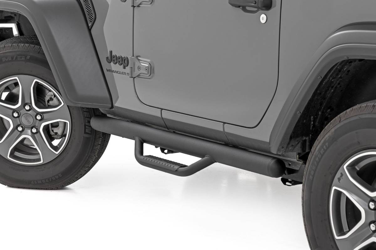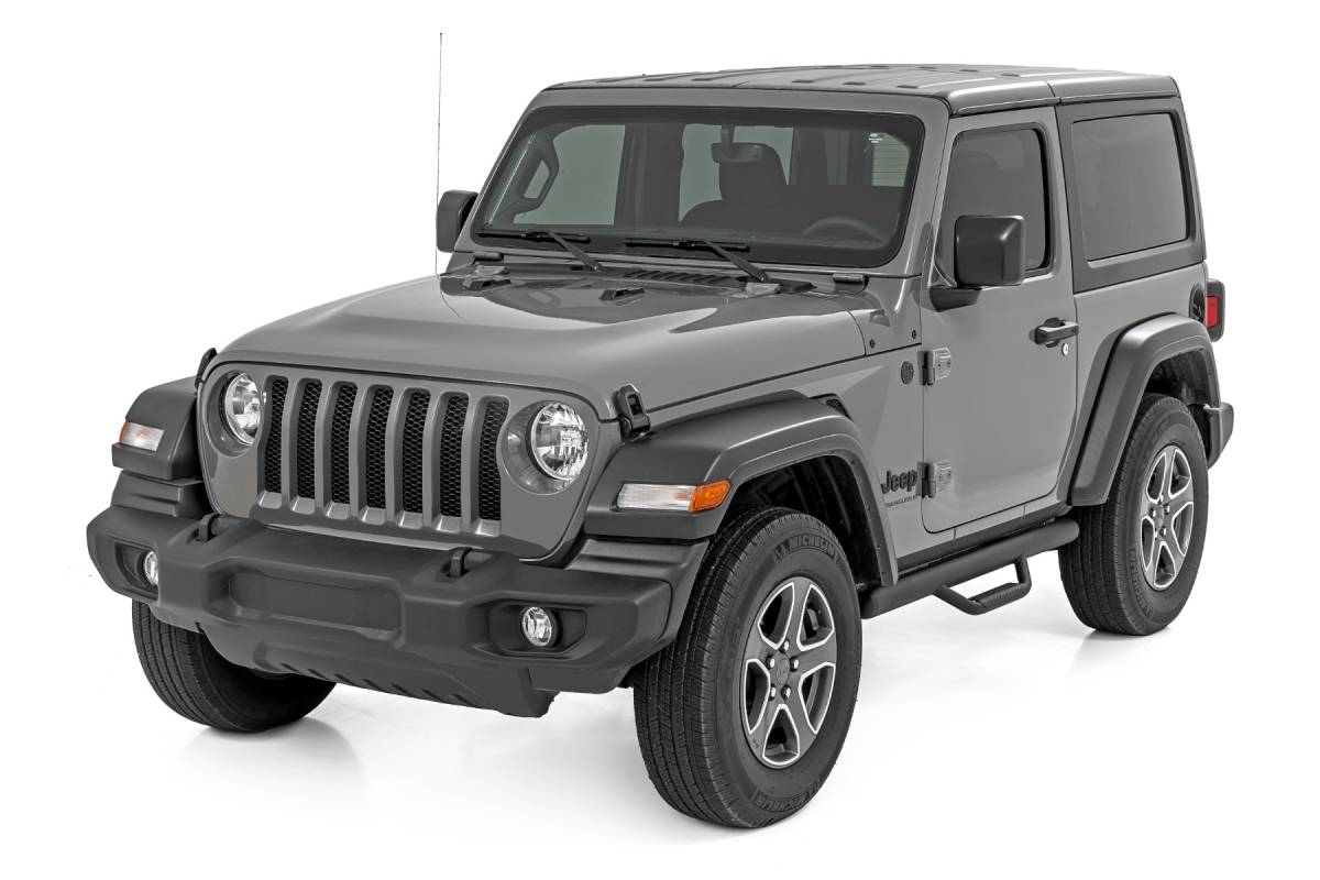 Climbing into your Jeep should never feel like a workout. With Rough Country's all-new bolt-on Nerf Steps, getting in and out is a breeze. Experience effortless access and elevate your Jeep with a sleek, durable upgrade. Enhanced Undercarriage Protection: Say goodbye to road debris, rocks, and obstacles that could damage your undercarriage. Our Nerf Steps act as a shield, protecting your vehicle from the harsh elements below. Integrated Stone Guards for Added Protection: Keep your Jeep Wrangler looking like new. The built-in stone guards effectively deflect kicked-up rocks and debris, preserving your vehicle's paint job from potential damage. Sleek, Streamlined Design: No bulky bars here, just a clean, high and tight profile that follows your cab's contours. These Nerf Steps provide a polished, streamlined look that enhances your Jeep's rugged yet refined style. Built to Endure: Crafted from .084 wall, corrosion-resistant tubing, these Nerf Steps are engineered to withstand anything the road or trail throws at them. From muddy trails to harsh environments, they'll handle it all while staying tough and reliable. Quick and Easy Installation: No drilling required, just bolt them on and enjoy a hassle-free installation. Spend less time working and more time exploring with this straightforward, user-friendly design. Limited Lifetime Warranty: Backed by Rough Country's Limited Lifetime Warranty, these Nerf Steps provide lasting durability and peace of mind for years to come. Step up your Jeep's style and protection with Rough Country Nerf Steps. Easy installation, superior defense, and a sleek, high-end design, everything you need to take your vehicle to the next level.