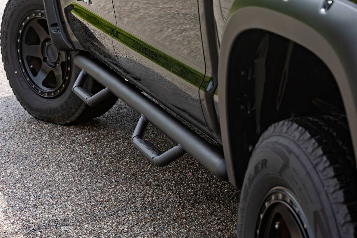 Climbing into your truck should never feel like a workout. With Rough Country's all-new bolt-on Nerf Steps, getting in and out is a breeze. Experience effortless access and elevate your truck with a sleek, durable upgrade. Enhanced Undercarriage Protection: Say goodbye to road debris, rocks, and obstacles that could damage your undercarriage. Our Nerf Steps act as a shield, protecting your vehicle from the harsh elements below. Integrated Stone Guards for Added Protection: Keep your Toyota Tundra looking like new. The built-in stone guards effectively deflect kicked-up rocks and debris, preserving your vehicle's paint job from potential damage. Sleek, Streamlined Design: No bulky bars here, just a clean, high and tight profile that follows your cab's contours. These Nerf Steps provide a polished, streamlined look that enhances your truck's rugged yet refined style. Built to Endure: Crafted from .084 wall, corrosion-resistant tubing, these Nerf Steps are engineered to withstand anything the road or trail throws at them. From muddy trails to harsh environments, they'll handle it all while staying tough and reliable. Quick and Easy Installation: No drilling required, just bolt them on and enjoy a hassle-free installation. Spend less time working and more time exploring with this straightforward, user-friendly design. Limited Lifetime Warranty: Backed by Rough Country's Limited Lifetime Warranty, these Nerf Steps provide lasting durability and peace of mind for years to come. Step up your truck's style and protection with Rough Country Nerf Steps. Easy installation, superior defense, and a sleek, high-end design, everything you need to take your vehicle to the next level.