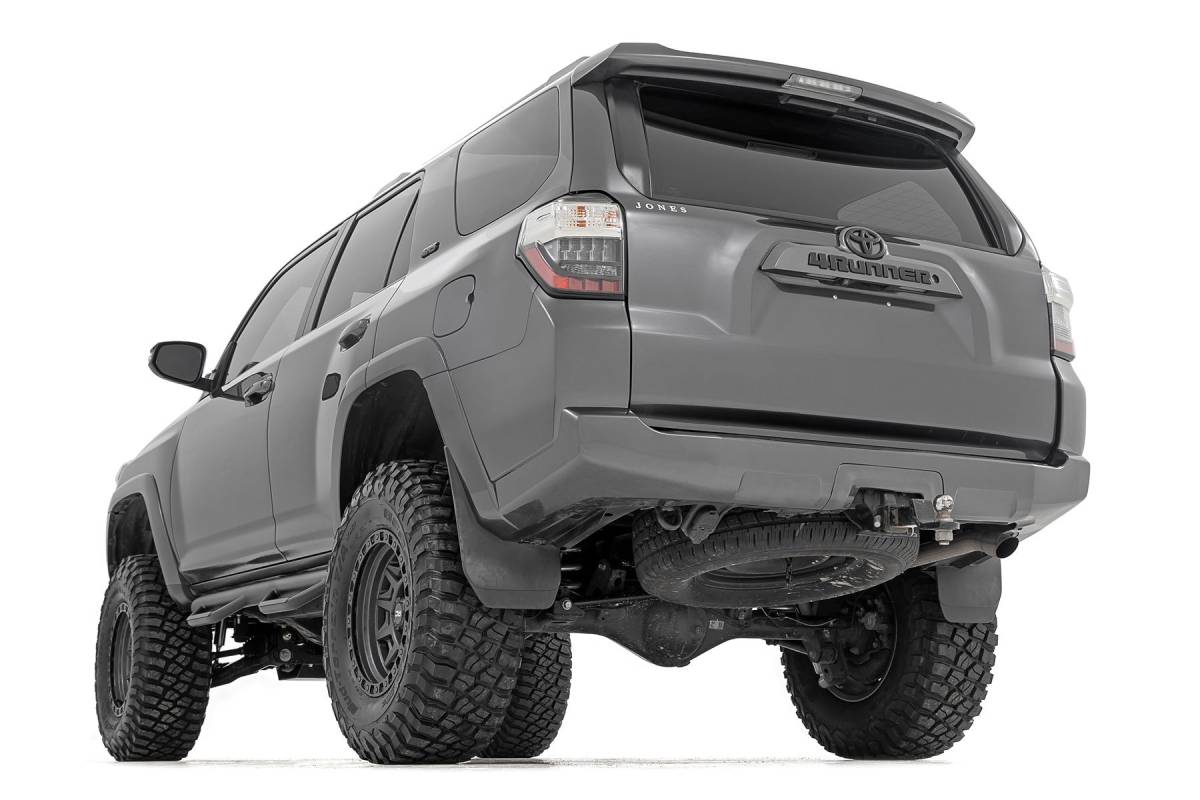 Climbing into your SUV should never feel like a workout. With Rough Country's all-new bolt-on Nerf Steps, getting in and out is a breeze. Experience effortless access and elevate your SUV with a sleek, durable upgrade. Enhanced Undercarriage Protection: Say goodbye to road debris, rocks, and obstacles that could damage your undercarriage. Our Nerf Steps act as a shield, protecting your vehicle from the harsh elements below. Integrated Stone Guards for Added Protection: Keep your Toyota 4Runner looking like new. The built-in stone guards effectively deflect kicked-up rocks and debris, preserving your vehicle's paint job from potential damage. Sleek, Streamlined Design: No bulky bars here, just a clean, high and tight profile that follows your cab's contours. These Nerf Steps provide a polished, streamlined look that enhances your SUV's rugged yet refined style. Built to Endure: Crafted from .084 wall, corrosion-resistant tubing, these Nerf Steps are engineered to withstand anything the road or trail throws at them. From muddy trails to harsh environments, they'll handle it all while staying tough and reliable. Quick and Easy Installation: No drilling required, just bolt them on and enjoy a hassle-free installation. Spend less time working and more time exploring with this straightforward, user-friendly design. Limited Lifetime Warranty: Backed by Rough Country's Limited Lifetime Warranty, these Nerf Steps provide lasting durability and peace of mind for years to come. Step up your SUV's style and protection with Rough Country Nerf Steps. Easy installation, superior defense, and a sleek, high-end design, everything you need to take your vehicle to the next level.