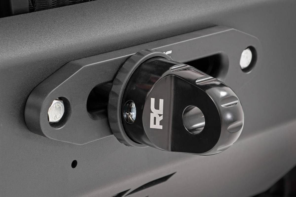 Upgrade your recovery system with a safer, stronger winch point with Rough Country's Aluminum Winch Shackle. Made from high-quality T-6 billet aluminum, Rough Country's winch shackle is stronger and more secure than regular winch hooks, safely able to hold 17,000lbs to tackle the toughest recovery scenarios. Rough Country's Winch Thimble Shackle is compatible with both 3/4in and 7/8in D-Rings and works with both synthetic and steel cables up to a 1/2in diameter and both hawse or roller fairleads. Installation is a snap with no special tools required!