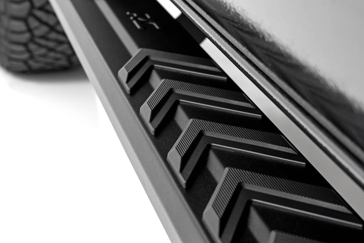 Ease of Access: Step into your vehicle with confidence using Rough Country's BA2 Running Board Side Steps. Designed for both form and function, these heavy-duty steel side steps offer a wide 5-inch stepping area, providing a secure and stable footing. A must-have for lifted applications, these steps enhance your vehicle's accessibility while delivering a rugged, off-road-ready look. Heavy-Duty Construction: Built to last, Rough Country's BA2 Running Board Side Steps feature a durable steel construction with a textured powder-coated finish for superior corrosion resistance. The integrated nonslip stepping surface ensures maximum traction, even in wet or muddy conditions. Engineered to support up to 500 lbs., these steps are as strong as they are stylish. Hassle-Free Installation: Get back on the road quickly with a no-drill, bolt-on installation. Designed for a precision fit, these running boards install easily using standard hand tools in approximately 1-2 hours. No cutting, drilling, or modifications required - just a seamless upgrade for your truck or SUV. Built for Lifted Rides: Whether you're driving a lifted truck or SUV, these side steps provide a sleek, functional upgrade that complements your vehicle's rugged stance. Their aggressive design enhances both style and accessibility, making them the perfect addition for off-road enthusiasts and daily drivers alike.5-Year Limited Warranty: Rough Country backs these BA2 Running Board Side Steps with a 5-year limited warranty, protecting against structural and workmanship defects. Drive with confidence knowing your investment is covered for years to come.