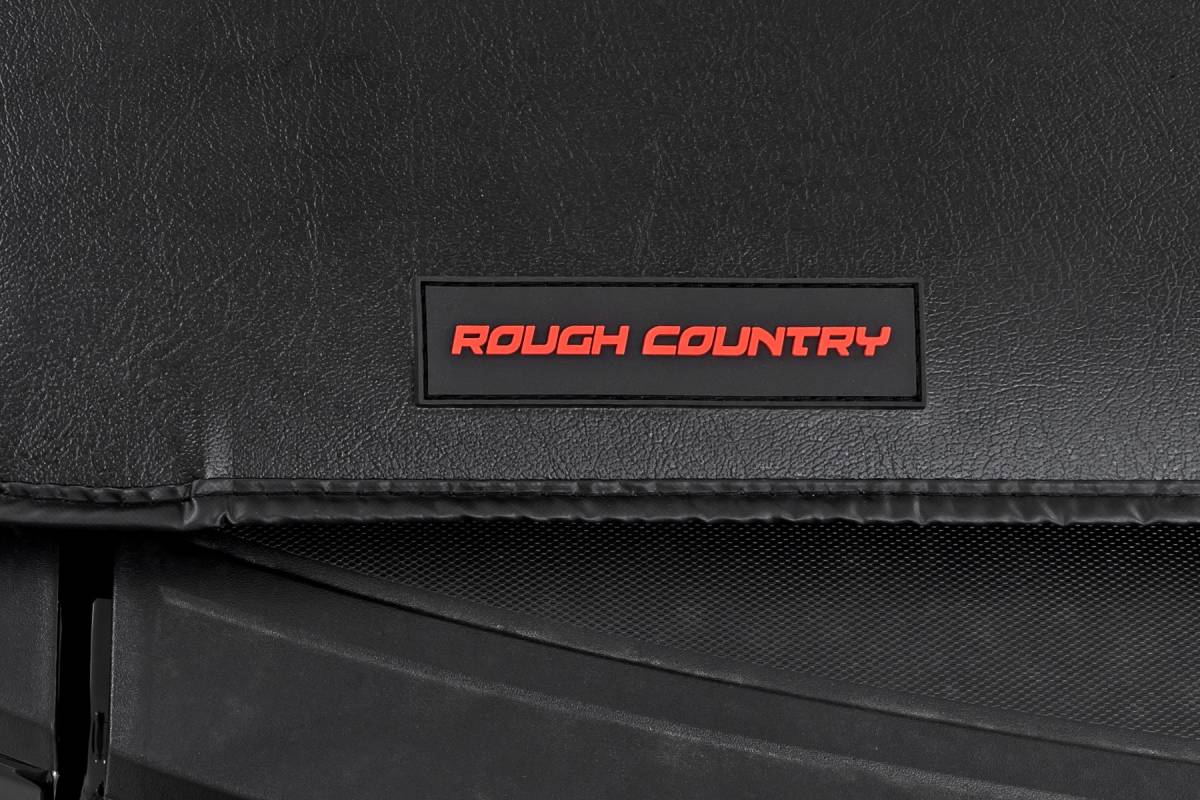 All-Weather Bed Protection: Rough Country's Soft Roll-Up Bed Cover delivers reliable protection against the elements while preserving full bed functionality. Constructed from high-quality, marine-grade vinyl with a sleek matte black finish, this durable cover features heavy-duty hook-and-loop side seals and tight front and rear barriers to shield your cargo from rain, dust, and debris. Streamlined Low-Profile Design: Sitting just 1-1/8" above the bed, this top-mount cover blends seamlessly with your truck's lines for a clean, stylish look. The corrosion-resistant, black powder-coated aluminum frame offers long-lasting strength without sacrificing style or aerodynamics. Fast and Easy Bed Access: The roll-up design and spring-latch closure system make opening and closing the cover a breeze. A single cable pull lets you release the latch quickly, giving you fast access to your full bed whenever you need it. Whether you're hauling gear or unloading tools, convenience comes standard. Effortless Installation: No drilling required - this cover installs in just 20 minutes using the included bracket system and tools. It mounts securely to your factory bed rails for a snug, hassle-free fit you can count on. Protected by a 5-Year Warranty: Rough Country backs this Soft Roll-Up Bed Cover with a 5-Year Replacement Warranty, protecting against structural and workmanship defects so you can hit the road with total confidence.