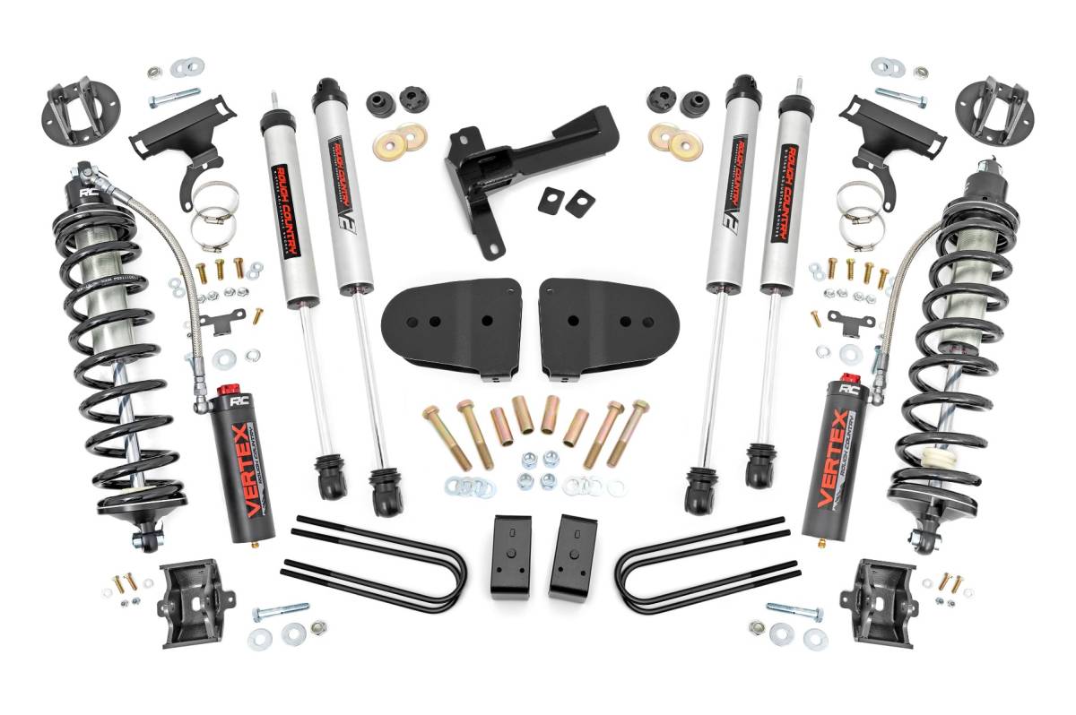 Explore New Heights. Give your fifth-generation Ford Super Duty superior lift height with Rough Country's 3-inch Coilover Suspension Lift Kit! This all-inclusive kit comes with everything you need for a total transformation of your truck. Run up to 35in tires while preserving the smooth, factory ride quality with this impressive upgrade. Durable Components. When changing a vehicle's suspension, the key to preserving ride quality is keeping the geometry of all suspension components as close to their factory angles as possible. Rough Country's new 3-inch Suspension Lift features a set of ultra-durable radius arm drop brackets, precision fit to bolt right into the factory mounts for an easier install and a more factory-like angle. Utilizing this conversion kit you're removing the factory independent coil shock and coil set-up and replacing it with a massive 2.5in piston, nitrogen-charged, 8-stage adjustable Vertex Coilover. Rough Country's Vertex Coilovers feature a monotube design with an external reservoir for increased oil capacity and damping sensitivity. When it comes to investing in a high-end kit, you ll be pleased to find that Rough Country's 2.5in piston design is beefier and offers an impressive 56% greater fluid capacity than the average reservoir shock. Each kit is paired with a monotube shock that provides optimal damping control. Installation. Requiring cutting and drilling to install, an estimated timeframe of 6-10 hours is recommended to complete this full installation. This full kit can be installed at home and can be completed efficiently and quickly! Limited Lifetime Replacement Warranty. Rough Country's 3-inch Coilover Suspension Lift Kit is backed with a limited lifetime replacement warranty towards manufacturer defects. As such, the product is protected from structural and workmanship damage after the date of purchase. With our industry-leading warranty give yourself peace of mind when using Rough Country's Suspension products!