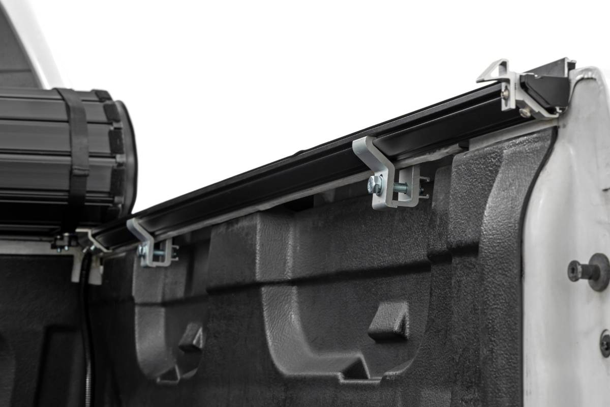 Your truck bed is built for hauling, but without a cover, your cargo is left vulnerable to the elements and unwanted attention. Rough Country's Hard Roll-Up Bed Cover delivers the perfect balance of security, durability, and style, keeping your gear safe, dry, and out of sight while transforming your truck with a sleek, modern look. Sleek Flush, Low-Profile Design: Finished in a stylish matte black with durable aluminum slats, this cover adds a clean, streamlined appearance that complements any truck. Convenient Roll-Up Access: Designed for everyday versatility, the roll-up design allows full bed access in seconds. A single cable pull quickly releases the latch, while the auto-latching closure locks everything back down securely, hassle-free. Built Strong, Built to Last: Supporting up to 600lbs of evenly distributed weight, this heavy-duty cover stands up to tough jobs. Its black powder-coated aluminum frame resists corrosion and harsh weather, ensuring long-lasting durability you can rely on. Smart, Secure Mounting System: A dependable track and rail system with included drain tubes channels water away efficiently, helping keep your cargo dry while ensuring a snug, weather-resistant fit. Safety and Peace of Mind: Nylon safety straps with quick-release clips keep the cover secure when rolled, while a dependable 5-year warranty backs your investment for years of worry-free use. No-Drill, Hassle-Free Install: With all tools included, installation and removal are simple and straightforward, no drilling required. Upgrade your truck with a bed cover that works as hard as you do. Strong, stylish, and built for convenience, the Rough Country Hard Roll-Up Bed Cover is the ultimate way to protect your gear while keeping your truck looking sharp.