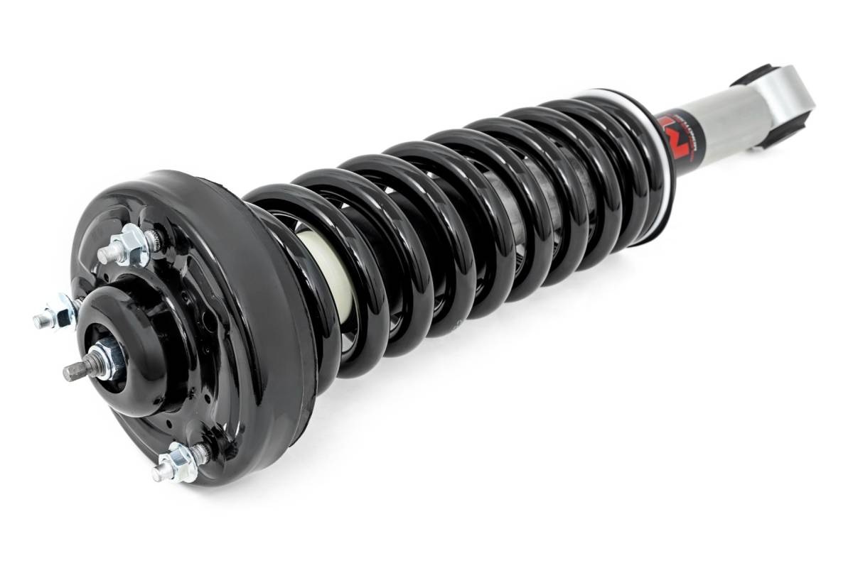 Improved Stance, Balance, and Handling. If you want to improve your vehicle's on-road performance and off-road capabilities, Rough Country's M1 Loaded Strut Kits are the way to go. Our M1 Loaded Struts help stabilize your vehicle's movements, enhancing control when you turn, brake, accelerate or ride over uneven road surfaces. As an adjustable ride height strut, these M1 s keep your suspension from overextending, providing a more consistent ride. Made for rugged off-road performance, our M1 monotube struts have a 46mm digressive piston for a more stable ride, preserving the smooth ride quality you need. Quality Construction. Rough Country's M1 Loaded Struts have been engineered to give you the most reliable performance, increased driving comfort, and all-around performance for your vehicle. Made from 2" seamless extruded tubing and feature durable vulcanized natural rubber bushings. They're also zinc plated for resistance against the elements. Plus, they're adjustable in height. Utilizing multiple grooves in the strut body the spring perch can be raised or lowered. So whether you're looking to add a little extra clearance for off-roading or just want your ride to sit a little higher, our M1 Monotube Loaded Struts are the perfect solution. Installation and Warranty. This bolt-on installation requires just basic tools and about 2-3 hours to complete. Our Strut Kit is backed with a limited lifetime replacement warranty towards manufacturer defects. As such, the product is protected from structural and workmanship damage after the date of purchase. With our industry-leading warranty, give yourself peace of mind when using Rough Country's products!