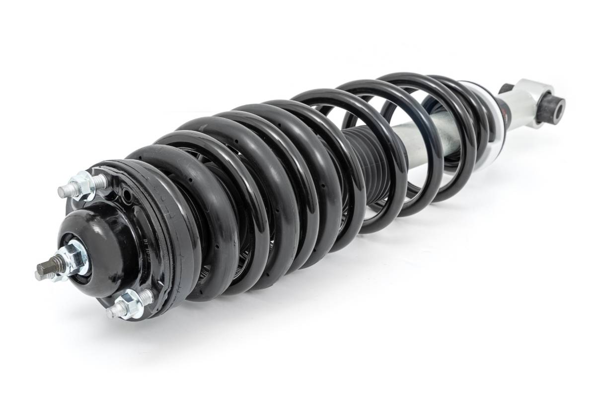 Improved Stance, Balance, and Handling. If you want to improve your vehicle's on-road performance and off-road capabilities, Rough Country's M1 Loaded Strut Kits are the way to go. Our M1 Loaded Struts help stabilize your vehicle's movements, enhancing control when you turn, brake, accelerate or ride over uneven road surfaces. As an adjustable ride height strut, these M1 s keep your suspension from overextending, providing a more consistent ride. Made for rugged off-road performance, our M1 monotube struts have a 46mm digressive piston for a more stable ride, preserving the smooth ride quality you need. Quality Construction. Rough Country's M1 Loaded Struts have been engineered to give you the most reliable performance, increased driving comfort, and all-around performance for your vehicle. Made from 2" seamless extruded tubing and feature durable vulcanized natural rubber bushings. They're also zinc plated for resistance against the elements. Plus, they're adjustable in height. Utilizing multiple grooves in the strut body the spring perch can be raised or lowered. So whether you're looking to add a little extra clearance for off-roading or just want your ride to sit a little higher, our M1 Monotube Loaded Struts are the perfect solution. Installation and Warranty. This bolt-on installation requires just basic tools and about 2-3 hours to complete. Our Strut Kit is backed with a limited lifetime replacement warranty towards manufacturer defects. As such, the product is protected from structural and workmanship damage after the date of purchase. With our industry-leading warranty, give yourself peace of mind when using Rough Country's products!