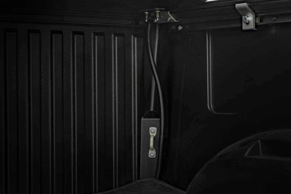 Your truck bed is built for hauling, but without a cover, your cargo is left vulnerable to the elements and unwanted attention. Rough Country's Hard Roll-Up Bed Cover delivers the perfect balance of security, durability, and style, keeping your gear safe, dry, and out of sight while transforming your truck with a sleek, modern look. Sleek Flush, Low-Profile Design: Finished in a stylish matte black with durable aluminum slats, this cover adds a clean, streamlined appearance that complements any truck. Convenient Roll-Up Access: Designed for everyday versatility, the roll-up design allows full bed access in seconds. A single cable pull quickly releases the latch, while the auto-latching closure locks everything back down securely, hassle-free. Built Strong, Built to Last: Supporting up to 600lbs of evenly distributed weight, this heavy-duty cover stands up to tough jobs. Its black powder-coated aluminum frame resists corrosion and harsh weather, ensuring long-lasting durability you can rely on. Smart, Secure Mounting System: A dependable track and rail system with included drain tubes channels water away efficiently, helping keep your cargo dry while ensuring a snug, weather-resistant fit. Safety and Peace of Mind: Nylon safety straps with quick-release clips keep the cover secure when rolled, while a dependable 5-year warranty backs your investment for years of worry-free use. No-Drill, Hassle-Free Install: With all tools included, installation and removal are simple and straightforward, no drilling required. Upgrade your truck with a bed cover that works as hard as you do. Strong, stylish, and built for convenience, the Rough Country Hard Roll-Up Bed Cover is the ultimate way to protect your gear while keeping your truck looking sharp.