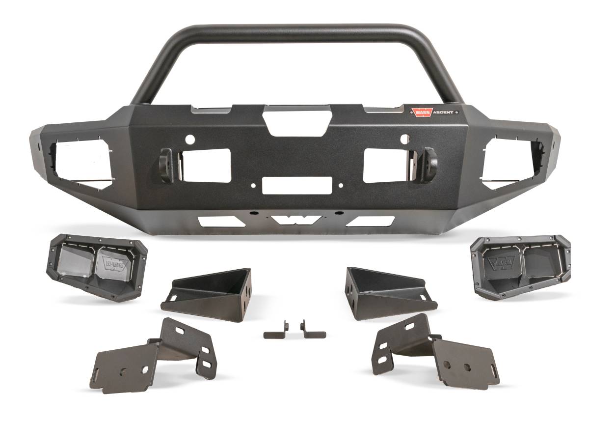 WARN Ascent Bumpers feature precision angles and a unique low-profile design maximize approach angles and optimize off-road performance. Made in the USA from thick steel and wearing a state-of-the-art textured powder-coated finish for corrosion resistance and great looks. Bumpers include a winch mount to fit most WARN mid-frame winches up to 12,000 lbs.