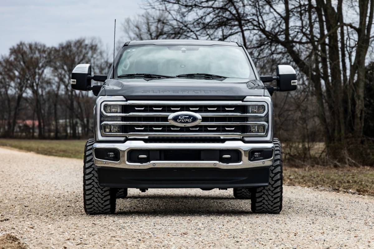 If you want to alter the look of your fourth/fifth generation Ford F-250 or F-350 Super Duty pickup truck, Rough Country's 2-inch Leveling Kit is the easiest way to go! At stock height, Ford s Super Duty trucks sit higher in the rear giving your truck a "nose-down" look. This easy-to-install kit raises the front of your truck 2-inches leveling the front with the rear for a vastly improved appearance and additional ride height resulting in the capability to run up to 33-inch tires. This kit includes a durable trackbar bracket to keep your axle centered. The 100% bolt-on installation process makes this leveling kit incredibly easy to install, even in a home garage with common tools. These solid, cast steel spacers are designed with a slight lip allowing the spacer to lock into the factory seat eliminating any guesswork in lining it up allowing you to easily match the factory angle and orientation for a perfect fit.
