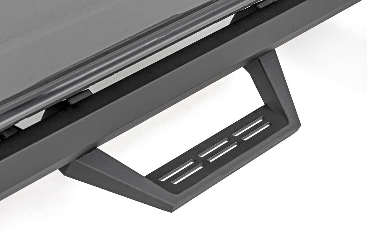 Lifted Bronco's are awesome, but getting in shouldn t feel like an extreme sport. Rough Country's SRL2 Steps deliver a solid, comfortable step up, making access to your ride easy and hassle-free. Say goodbye to awkward lunges and tricky maneuvers. The SRL2 Steps are engineered to simplify vehicle entry while adding a rugged, stylish touch to your Bronco. Whether you re on the trails or in the city, these steps are built to make life easier and your adventures smoother.Effortless Installation: Designed for a quick, no-fuss setup with all the necessary hardware included. You ll be road-ready in no time.Durable Powder-Coated Aluminum Rail: Built to withstand the harshest conditions with exceptional corrosion resistance and long-lasting performance.Heavy-Duty Powder-Coated Steel Brackets: Provides a secure, reliable mount to handle the roughest terrain and heavy use.Black Stainless Steel Zinc-Plated Hardware: Combines strength and style while resisting rust, ensuring your steps stay functional and sharp-looking for the long haul.Molded End Caps for Protection: Keep dirt, debris, and moisture out of the rail to maintain a cleaner, more polished look.Modular Design with Adjustable Step Placement: Fully customizable to fit your needs-position the steps exactly where you want them for easy, comfortable access.Ready to level up your Bronco? With Rough Country's SRL2 Steps, you ll enjoy reliable durability, unmatched convenience, and a bold look that fits any adventure.