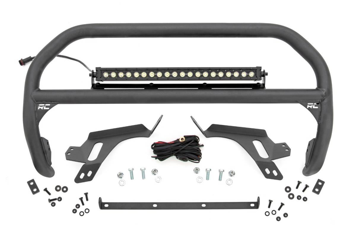 Rough Country - Nudge Bar - w/ Tow Hooks - 20 Inch BLK DRL Single Row LED - Ford Bronco Sport (21-24) - 51156Nudge Bar - w/ Tow Hooks - 20 Inch BLK DRL Single Row LED - Ford Bronco Sport (21-24)