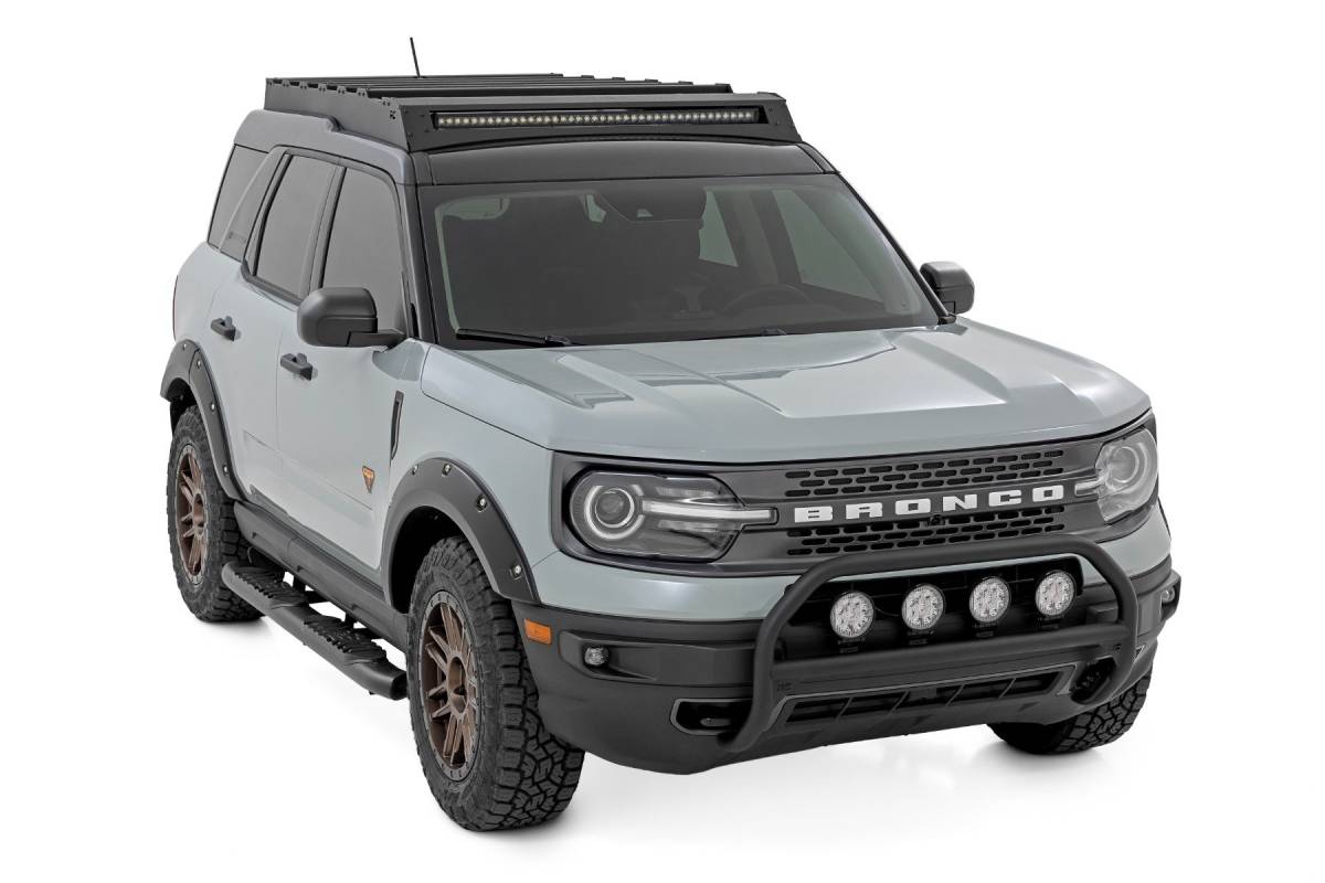 Tough Protection, Bold Style: Outfit your Ford Bronco Sport with Rough Country's Nudge Bar for the ultimate blend of strength and style. Crafted from durable 2-inch tubular steel, this bull bar adds a rugged layer of front-end protection while giving your SUV a commanding look on or off the trail. Installation Notice: This Nudge Bar requires cutting and drilling for proper installation. With careful attention and standard tools, you can achieve a secure, custom fit that enhances both protection and appearance. Built to Last: Finished in a corrosion-resistant black powder coat, this Nudge Bar is engineered to withstand the elements and maintain its sleek appearance for years of use. Lighting Ready: Take on the night with multiple lighting options to suit your needs. Choose from a 20" Black Series LED Light Bar (7200 lumens), a 20" Spectrum Series Light Bar (24,300 lumens), or four 4" round LED lights (8640 lumens). Each lighting setup includes a durable, die-cast aluminum housing and a waterproof, braided wiring harness for reliable all-weather performance. Reliable Coverage: The Nudge Bar is backed by Rough Country's 5-year limited warranty, and all lighting options include a 3-year limited warranty for added peace of mind.