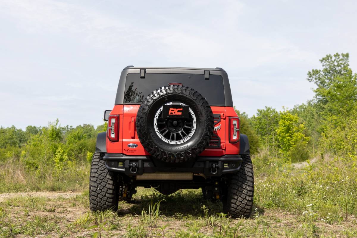 Innovative Design. Beef up your Bronco s rear end with Rough Country's Tubular Rear LED Bumper! This stylish, durable steel bumper offers unbridled protection for the rear of your Bronco while giving you increased tire clearance for off-road articulation. With bold angles and contoured curves, this rear bumper is a true head-turner that s sure to get attention. Stylish Features and Construction. Rough Country's Rear Bumper features an all-steel construction for serious durability and comes coated in a corrosion-resistant, textured black powder coat to withstand the elements. This rear bumper offers a robust design and includes two 2" Black Series LED pods that boast 2880 lumens of raw power to ensure that you can see any obstacle behind you! Installation. With a no-cut or drilling required to install, installation couldn't be easier. With an estimated timeframe of 3-4 hours, this full kit can be installed at home using standard tools and can be completed efficiently and quickly! Limited Lifetime Replacement Warranty. Rough Country's Tubular Rear LED Bumper is backed with a limited lifetime replacement warranty towards manufacturer defects. As such, the product is protected from structural and workmanship damage after the date of purchase. With our industry-leading warranty give yourself peace of mind when using Rough Country's Suspension products!