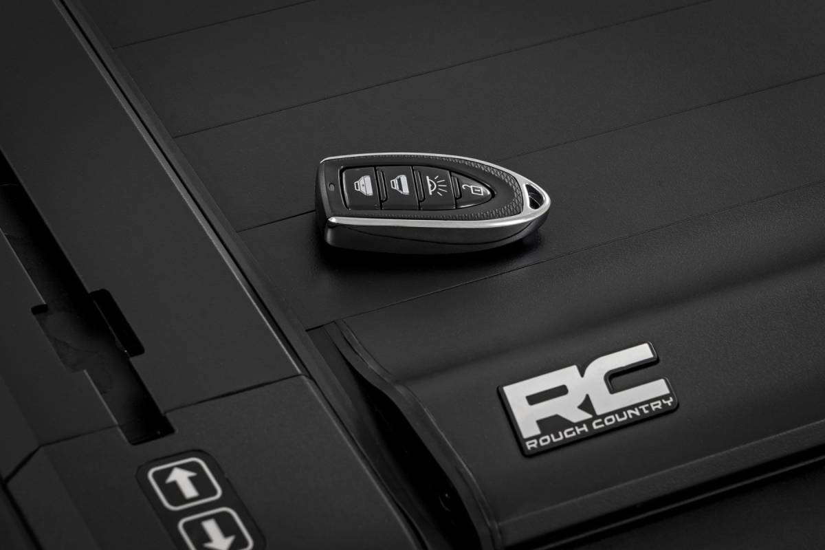 Integrated Bed Rail Controls: Easily open and close the bed cover from the side rail for added convenience and quick access to your gear. Key Fob-Controlled LED Light Strip: The integrated LED light strip illuminates your truck bed, offering better visibility at night, controlled conveniently via the key fob. Auto-Locking Security: For added peace of mind, the bed cover features an auto-locking function, ensuring your cargo stays secure at all times. Rough Country's Powered Retractable Bed Cover combines style, security, and convenience, giving you the confidence that your truck is looking its best while your gear stays protected. Every truck owner knows the importance of securing and protecting their gear, especially when conquering trails or venturing into the wild. With the Powered Retractable Bed Cover for Ford Maverick models, you not only shield your equipment from unpredictable weather but also add an unmatched layer of security and style to your truck. Engineered with precision, this bed cover is designed to serve you whether you're cruising smooth highways or tackling rugged trails. Maximized Bed Access: The cover rolls smoothly to provide nearly full bed access, allowing you to make the most of your truck's storage potential. Heavy-Duty Aluminum Construction: Built tough with a rugged aluminum frame and sleek matte black finish, this bed cover is engineered to endure daily use and intense outdoor conditions without compromising on style. UV Protection for Long-Lasting Finish: Featuring built-in UV protection, the cover resists sun damage, keeping it looking brand new and preventing any fading over time. Lock Your Cover in Any Position: Thanks to its innovative electromagnetic brake system, you can lock the cover securely at any point along the rails, offering total flexibility for your storage needs. Remote Key Fob for Convenient Entry: Open or close your bed cover with just the push of a button using the integrated remote key fob, ensuring easy access even from a distance. Utility Rail with T-Slots: Enhance your storage options with the integrated utility rail, perfect for mounting racks and accessories to maximize your truck's versatility.