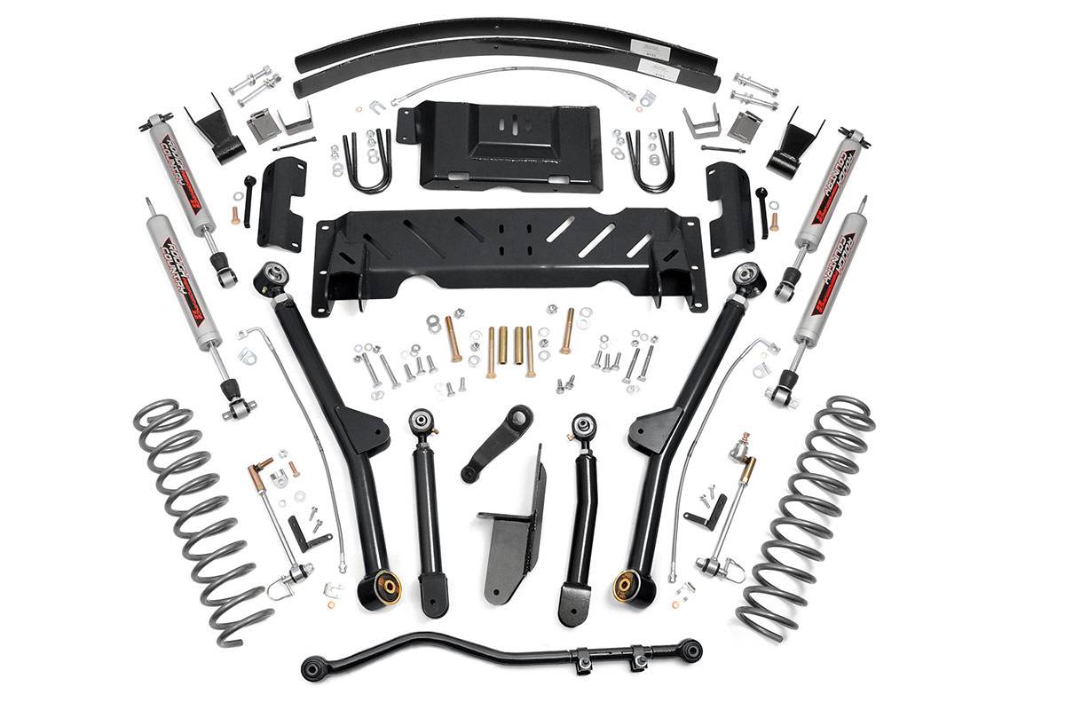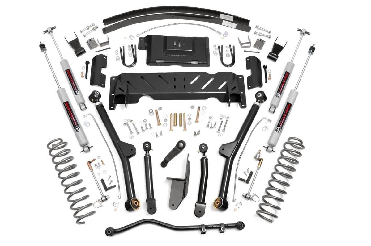 Unleash Your XJ's Full Potential: Take your Jeep Cherokee XJ's already capable platform to the next level with Rough Country's 4.5-inch Long Arm Suspension Kit. This fully bolt-on upgrade relocates the front control arms to achieve optimum alignment angles while delivering insane articulation for superior off-road performance. Engineered for Maximum Strength: Featuring heavy-duty high-clearance lower control arms and extreme-travel long arms, this system keeps your suspension geometry dialed in while boosting ground clearance. X-Flex control arms are equipped with Clevite OEM-style rubber bushings and oversized flex joints with a massive 2.5-inch body and 1.25-inch threads. Fully greaseable and built for longevity, these arms allow upper joints to pivot up to 20 degrees and lower joints up to 35 degrees, perfect for conquering uneven terrain. Premium Shock Performance: Choose from Rough Country's advanced shock lineup, including N3, V2, or M1 monotube options, each engineered for a perfect balance of on-road comfort and off-road control. All shocks feature 10-stage variable valving, a high-pressure nitrogen charge, durable 18mm spring-loaded piston rods, and oversized shock bodies for faster cooling, enhanced ride quality, and long-lasting durability. Customize Your Ride: Available with add-a-leaf springs for a cost-effective lift or full replacement leaf packs for premium ride quality and strength. Unmatched Value: Get top-quality craftsmanship, extreme off-road capability, and long-lasting durability, all at an unbeatable price backed by Rough Country's trusted reputation.