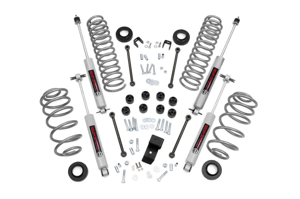 Looking to enhance your Jeep's off-road capabilities without compromising on highway comfort? The 3.25-inch Lift Kit by Rough Country delivers just that's a perfect blend of rugged performance and smooth driving. Designed for easy installation and built for adventure, this kit will elevate your Jeep to new heights, both literally and figuratively! Effortless Bolt-On Installation: No need for complicated modifications installation is quick and hassle-free, so you can hit the trails sooner. Enhanced Ground Clearance: Gain extra height to conquer uneven terrain and improve off-road performance, giving you the edge on tough trails. Perfectly Leveling Your Ride: Achieve a well-balanced stance with this lift kit, leveling the front and rear of your Jeep for a smoother and more stable ride. Rear Track Bar Bracket for Precise Alignment: Ensure perfect rear axle alignment with this essential feature, improving handling and boosting overall stability, especially on rugged trails. Configurable Shock Options: Choose your ideal ride quality with customizable shock options, including nitrogen-charged N3 or M1 Monotube shocks. Take control of your Jeep's comfort and performance. This 3.25-inch Lift Kit comes complete with application-tuned, lifted coil springs, a transfer case drop kit, track bar bracket, and extended sway bar links, giving your Jeep everything it needs for enhanced off-road performance. Engineered by Rough Country's Research and Development Team, this lift kit is designed for drivers who demand both performance and comfort from their vehicle.