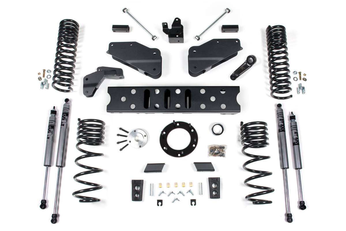 This 5.5 inch lift kit from Zone Offroad is designed for the Ram 2500 (2019–2026) 4WD Gas models. The kit includes everything needed for a complete lift, from full-length coil springs and radius arm drop brackets to steering correction and rear lift to level the stance. Clearance is provided for up to 37 inch tires.
