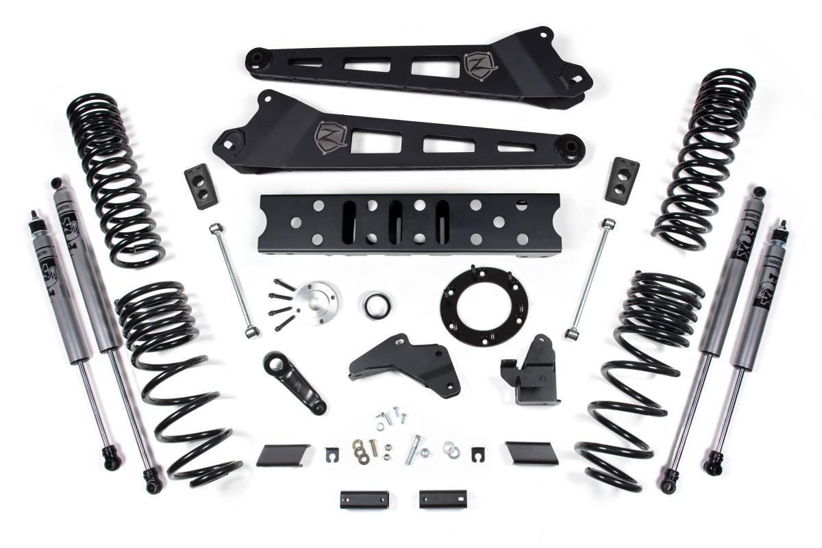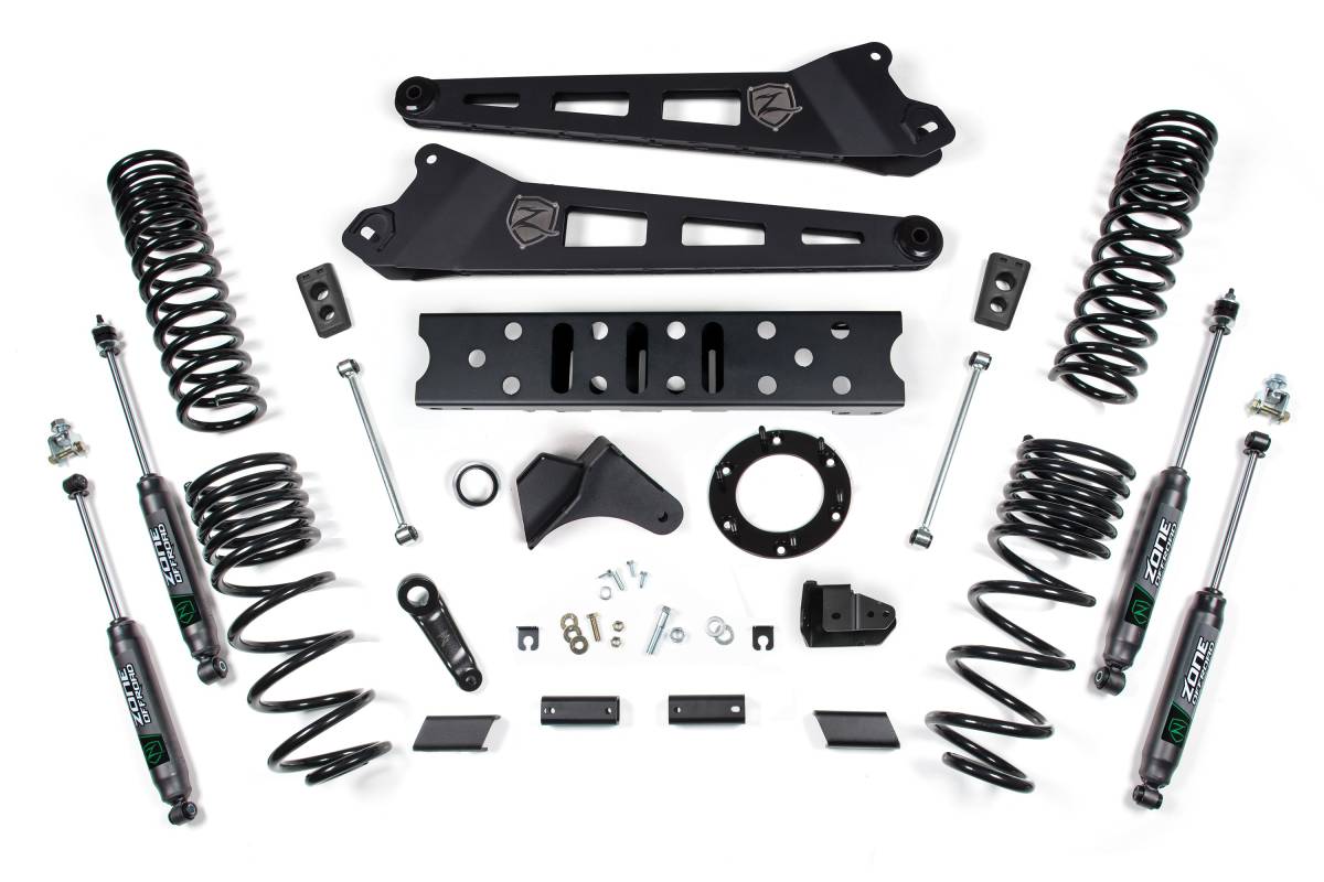 This 5.5-inch radius arm lift kit from Zone Offroad is designed for the Ram 2500 (2019–2026) 4WD gas models. The kit includes everything needed for the install, from full-length coil springs and heavy-duty radius arms to steering correction components and rear lift to level the truck's stance. The kit provides clearance for up to 37-inch tires.