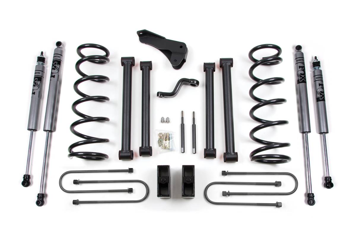 This 5 Inch Lift Kit is designed to raise and level your 2009 Dodge/Ram 2500/3500 4WD truck, providing clearance for tires up to 36 inches. The kit includes all necessary components to complete the installation.