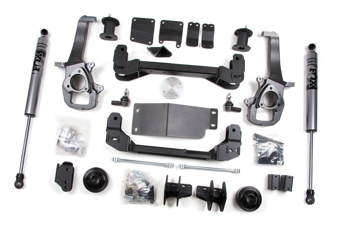 Includes FOX Adventure Series shocks featuring a nitrogen-charged twin-tube design, 10-stage velocity-sensitive valving, dual-welded ends for increased strength, self-lubricating seals, black powder coat finish, and a 2-inch diameter steel body.