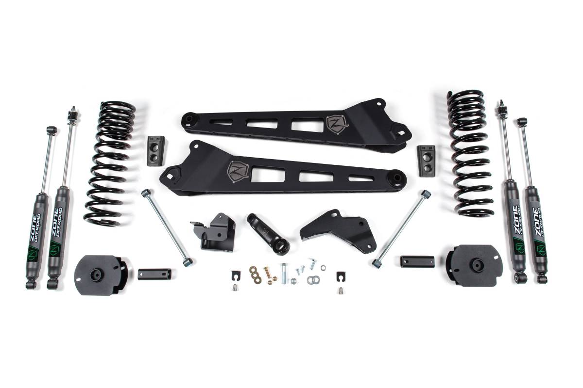 This 4.5-inch lift kit from Zone Offroad is designed for the Ram 2500 4WD Diesel (2014–2018). The kit includes everything needed to lift and level your truck, from full-length coil springs and heavy-duty radius arms to steering correction components and rear lift hardware. It provides clearance for tires up to 37 inches.