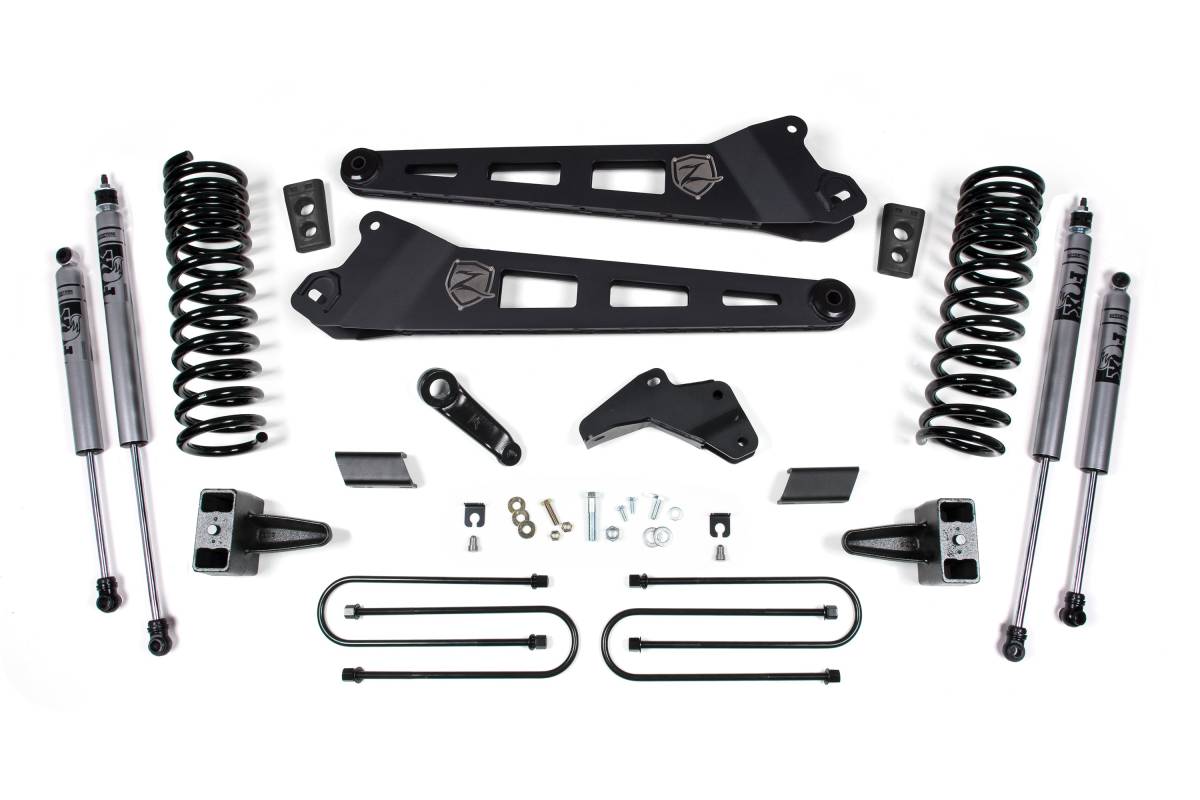 This 6.5-inch lift kit from Zone Offroad is designed for the 2013–2018 Ram 3500 4WD Diesel. The kit includes everything needed to lift and level your truck, from full-length coil springs and heavy-duty radius arms to steering correction hardware and rear lift components. It provides clearance for tires up to 37 inches.