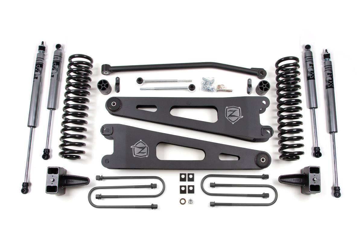 If your vehicle is equipped with a top mounted overload/helper spring, 4 longer U-bolts may be required — add in configuration at checkout. If your vehicle has a two-piece rear drive shaft, add a carrier bearing drop kit to reduce post-lift driveline angles and avoid or eliminate driveshaft vibration.