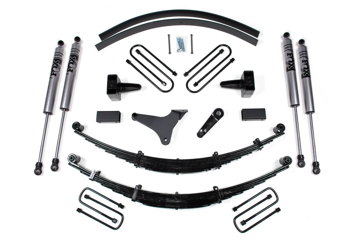 Built with Square front U-bolts, typically suited for 1999–2000 model year Super Duties. Includes FOX 2.0 Adventure Series shocks featuring a nitrogen-charged twin-tube design, 10-stage velocity-sensitive valving, dual-welded ends, self-lubricating seals, and a 2-inch diameter black powder-coated steel body.